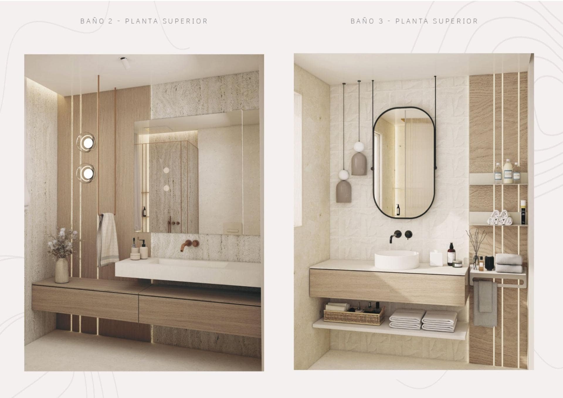 Each villa offers three bedrooms and four bathrooms, including three en suite, plus an additional guest toilet. The homes are distributed across three levels, designed to maximize comfort and versatility.
