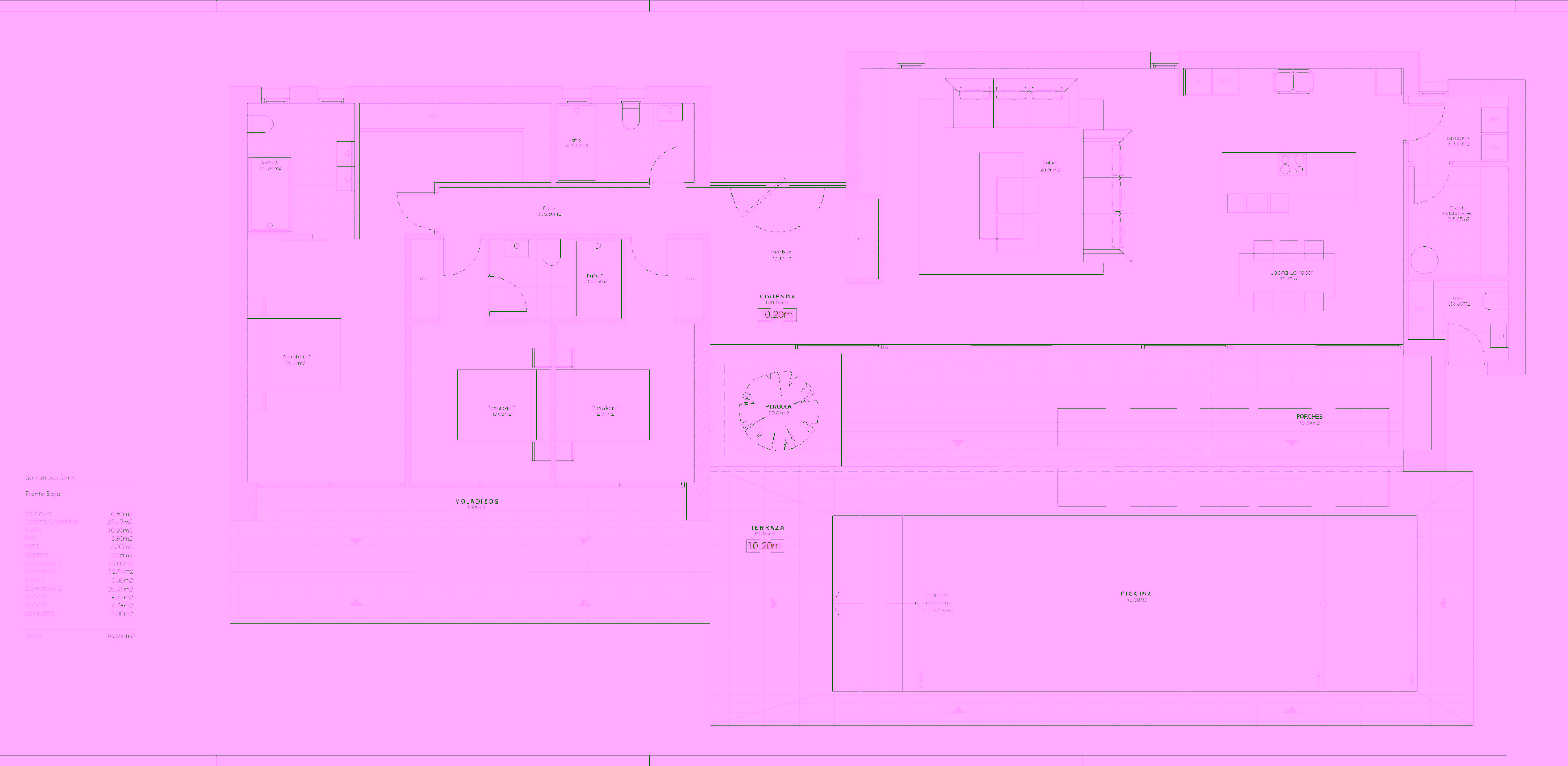 Designed for practicality and ease, the villa is distributed across a single floor, making it ideal for both families and retirees. The entrance leads into a bright hallway, opening up to a spacious open-plan living and dining area with a modern kitchen featuring an island separate utility room. Large sliding doors connect the interior with a covered porch area complete with a built-in barbecue, an expansive terrace, and a private swimming pool of 52 m².