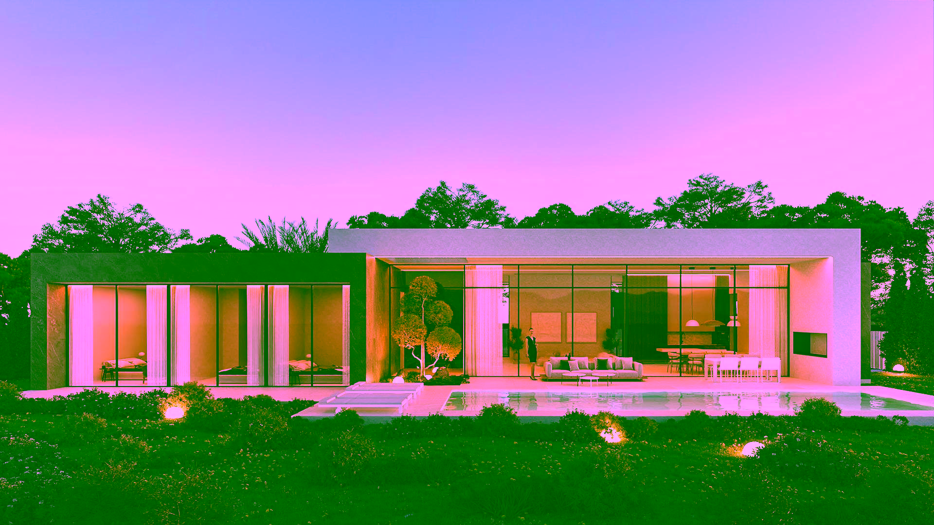 Landscaped garden with privacy-enhancing cypress hedges