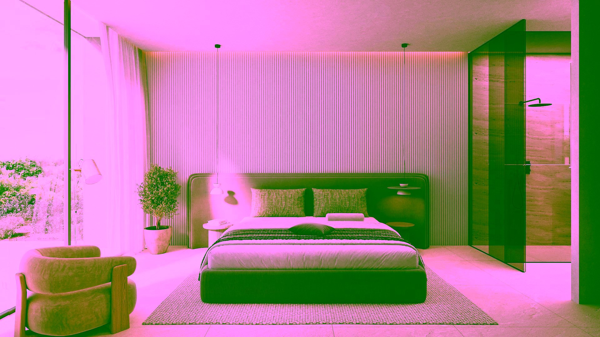A master suite with walk-in wardrobe and en-suite bathroom