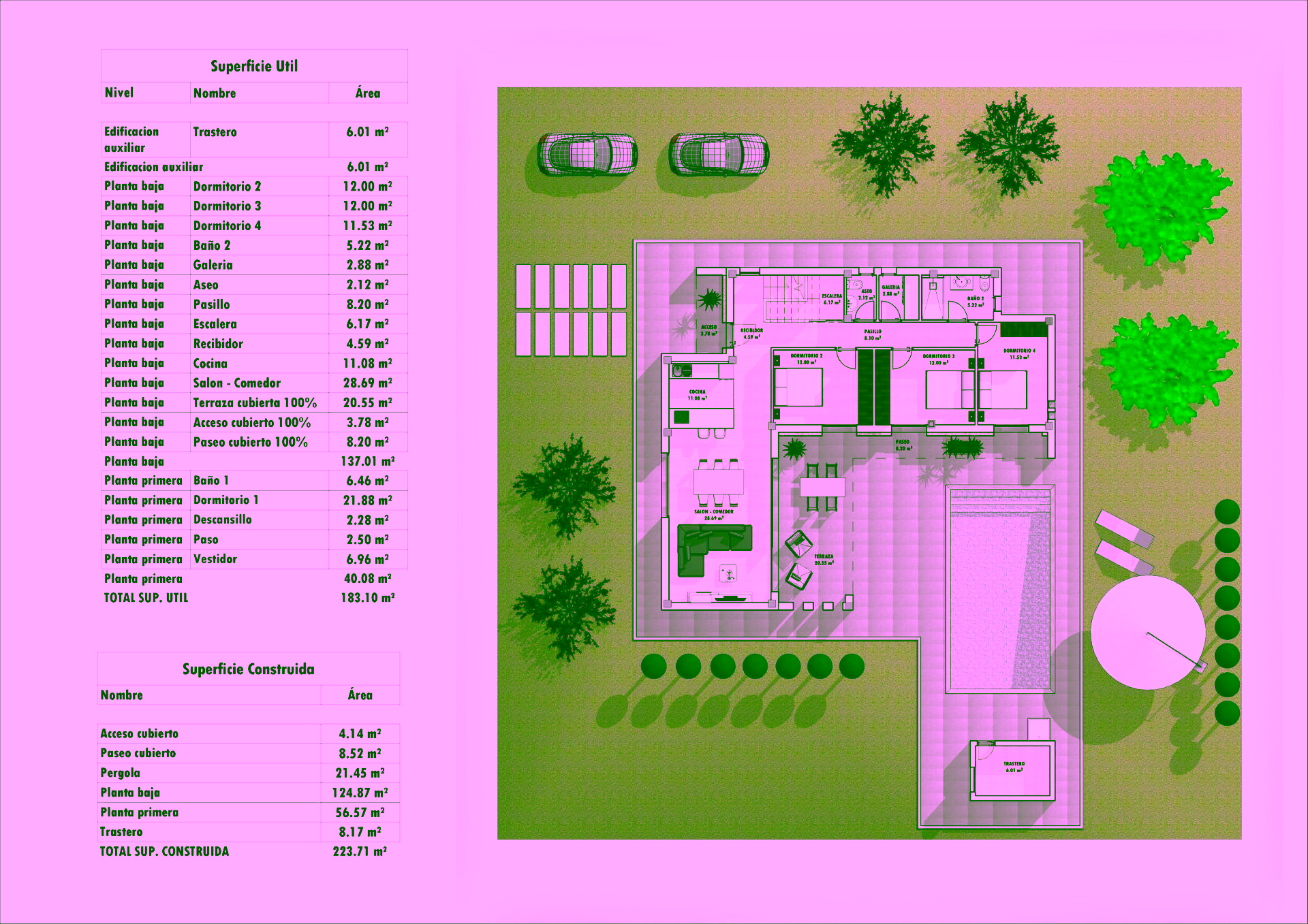 The villas have an open-plan kitchen with living room, built-in wardrobes, private swimming pool, porch, storage room and outdoor parking space.