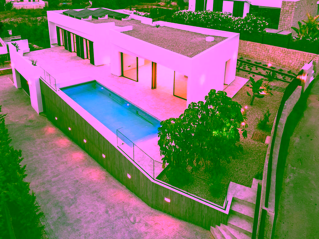 This exceptional modern villa, newly built and key ready, is located on the beautiful coast of Benissa, between the charming towns of Calpe and Moraira (Costa Blanca, Alicante). Positioned just 1.5 km from La Fustera Beach, one of the area’s most prestigious Blue Flag beaches, this home combines architectural elegance, high-quality materials, and advanced energy efficiency to deliver the perfect Mediterranean lifestyle.
