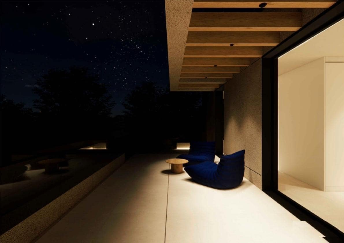 The top floor is dedicated exclusively to the master suite. This private level offers an en suite bedroom with access to a spectacular 40 m2 terrace and breathtaking panoramic sea and mountain views, ensuring maximum privacy and comfort.