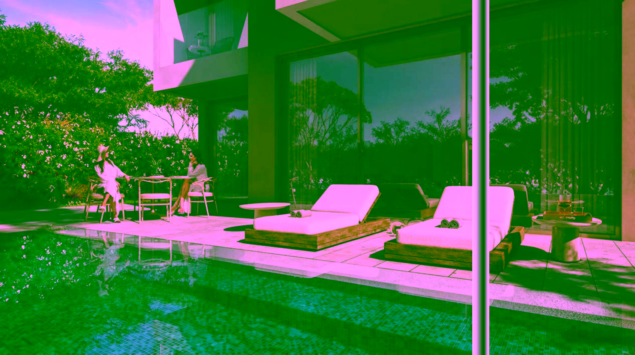 Immersed in lush, landscaped parks, this contemporary two-story villa offers a serene and sophisticated lifestyle, thoughtfully crafted to embrace the beauty of its natural surroundings. Positioned to maximize privacy and tranquility, the home captures sweeping views of greenery from every angle, creating an atmosphere of calm and refined elegance.