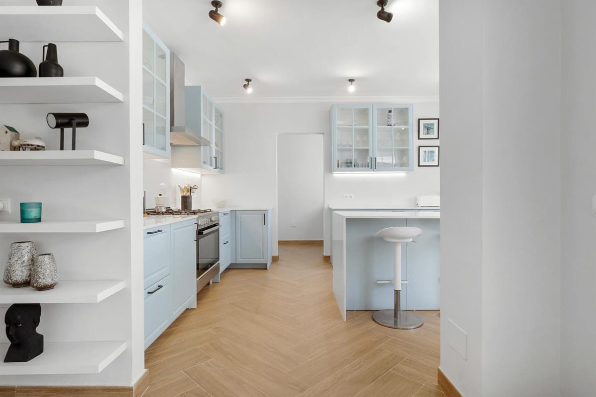 Upstairs, the spacious master bedroom offers an en-suite bathroom and a private terrace for serene morning views. Two additional guest bedrooms share a stylish bathroom, creating a perfect space for family or visitors. The outdoor area boasts a private landscaped garden with a heated pool, ideal for year-round enjoyment. The property includes a garage for one car and additional parking space for up to three more vehicles.