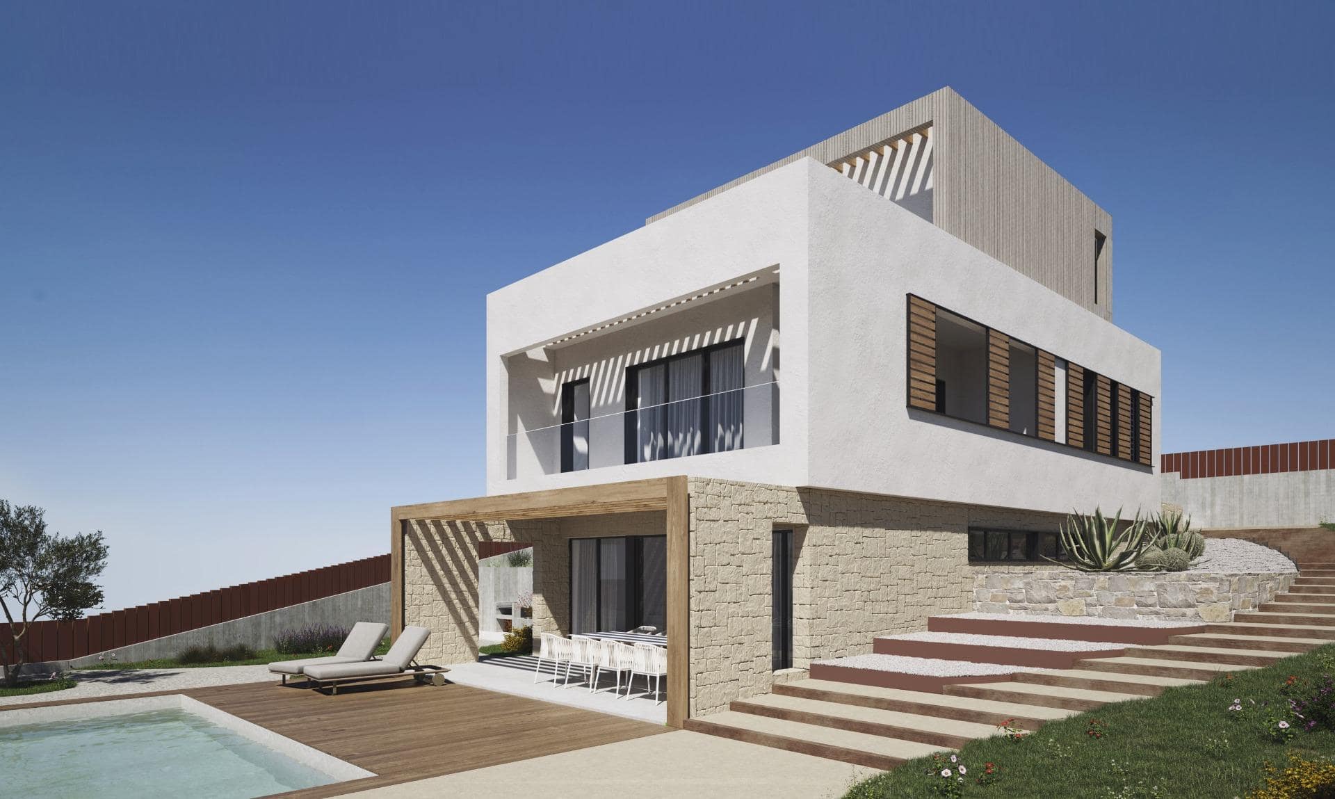 Villas with 4 bedrooms and 4 bathrooms, open plan kitchen with lounge area, terrace with magnificent views over Benidorm, private garden with swimming pool and parking space.