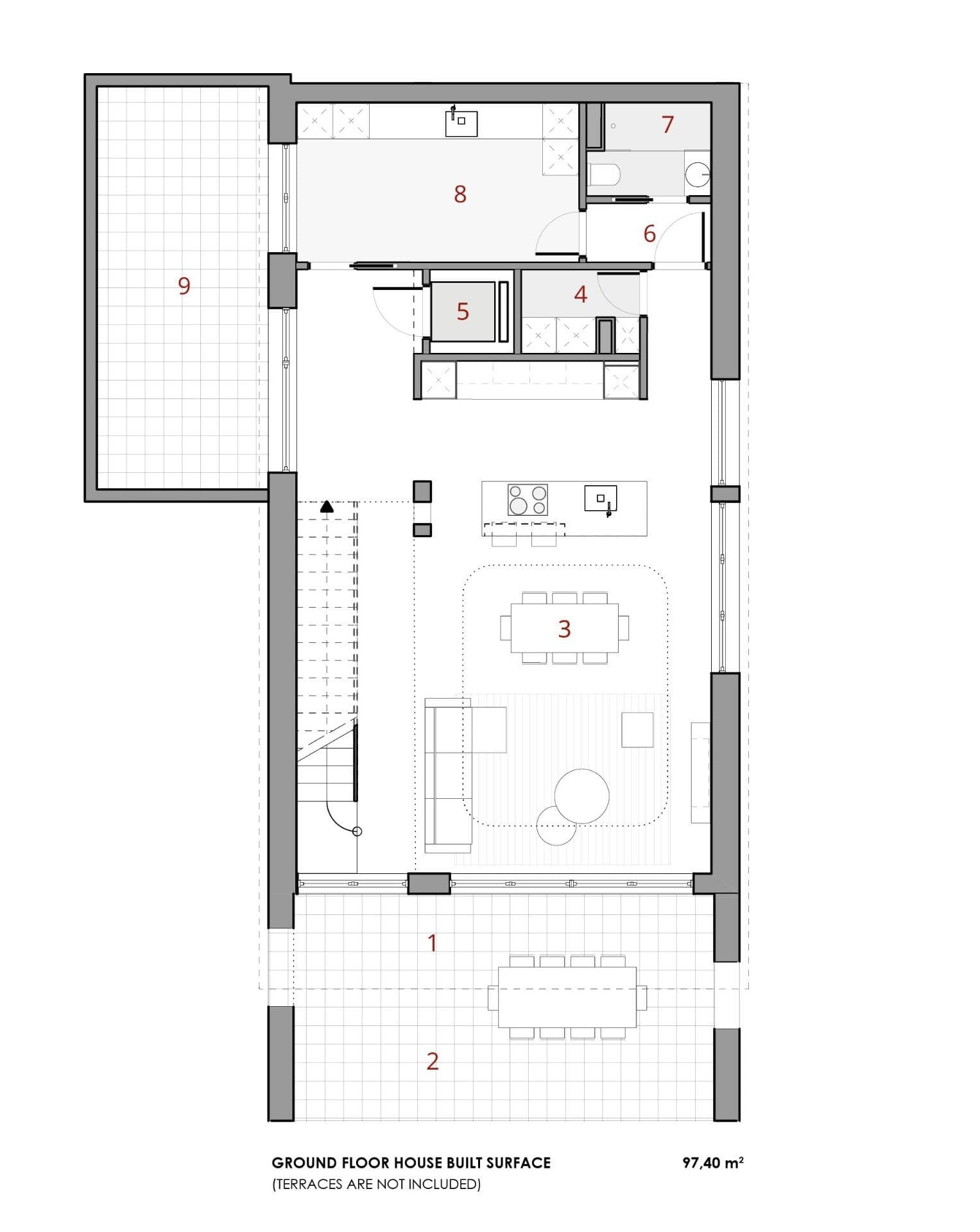 Level 1, with its monolayer finish and wooden shutters, safeguards the most intimate part of the residence.
