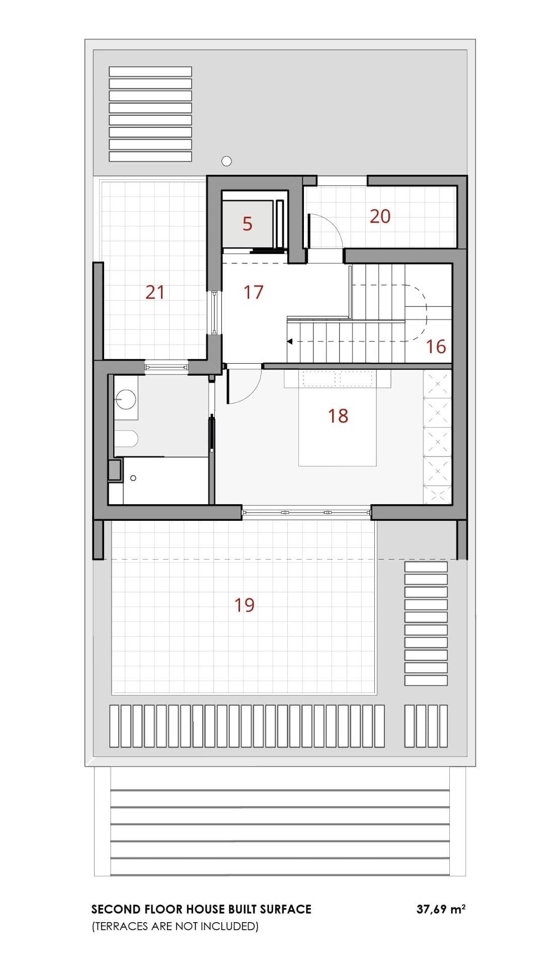 Finally, Level 2, where the master bedroom is located, opens up to a spacious terrace and is finished with textured monolayer in a warm tone.