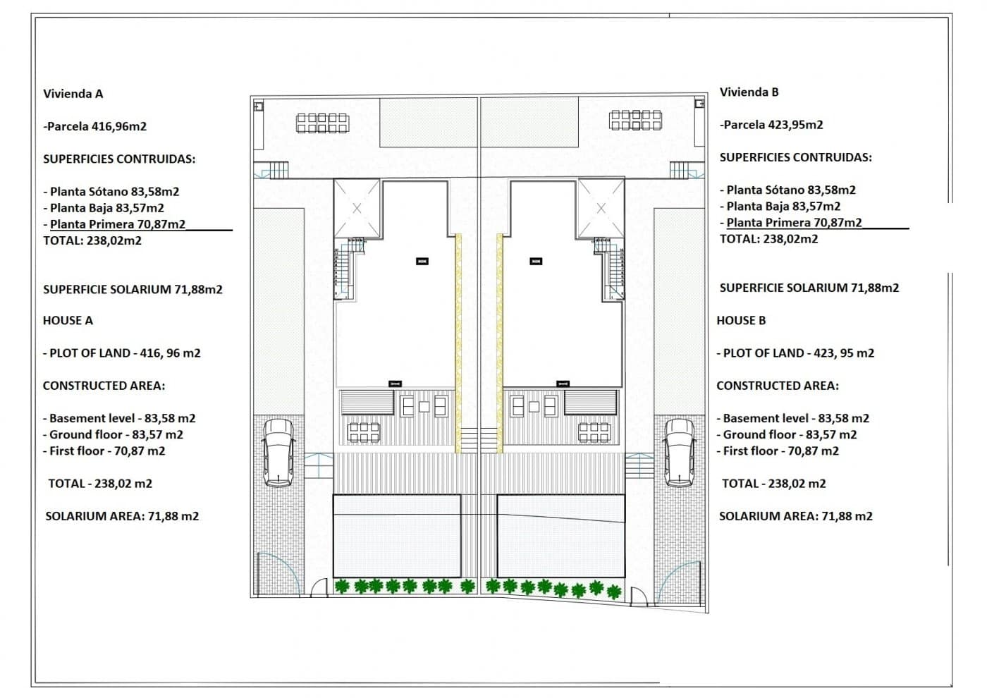 Villas has 4 bedrooms, 4 bathrooms, open plan kitchen with the lounge area, fitted wardrobes, private garden with the pool and off road parking space, private solarium and basement.