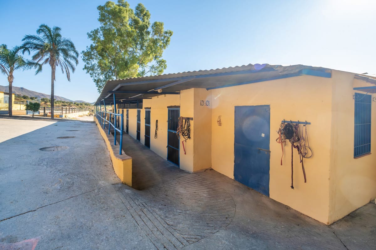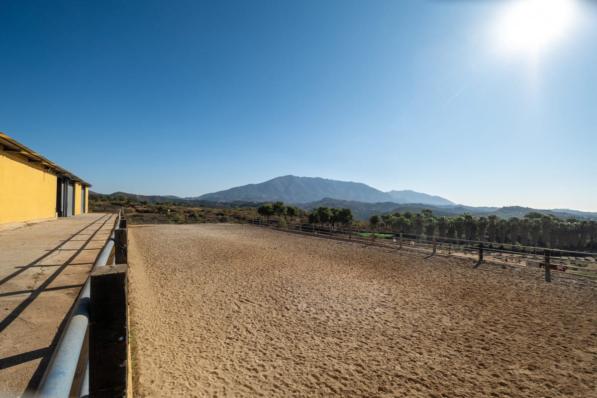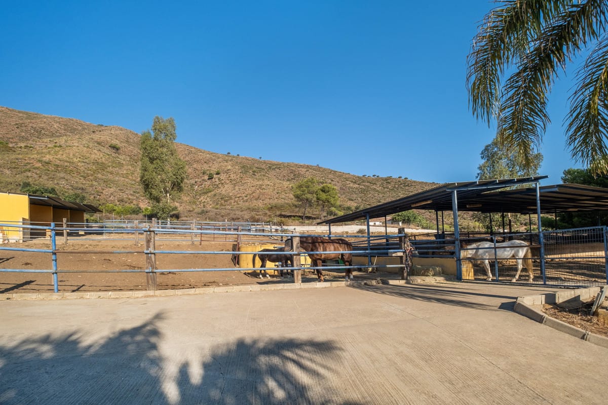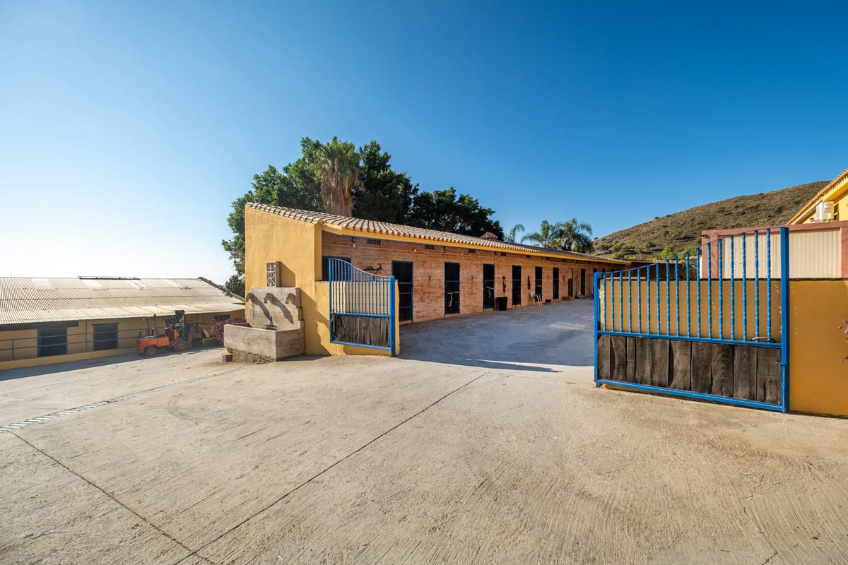 Set on a sprawling 100,000 square meter plot in the picturesque Mijas Costa, this exceptional equestrian property offers a rare combination of extensive facilities and proximity to the beach. Just a 15-minute drive from the stunning Costa del Sol coastline, this estate is perfect for equestrian enthusiasts, professional trainers, or those looking to invest in a unique property with immense potential. The centerpiece of the estate is a state-of-the-art stable complex, featuring 25 well-maintained boxes designed for the utmost comfort and care of horses.