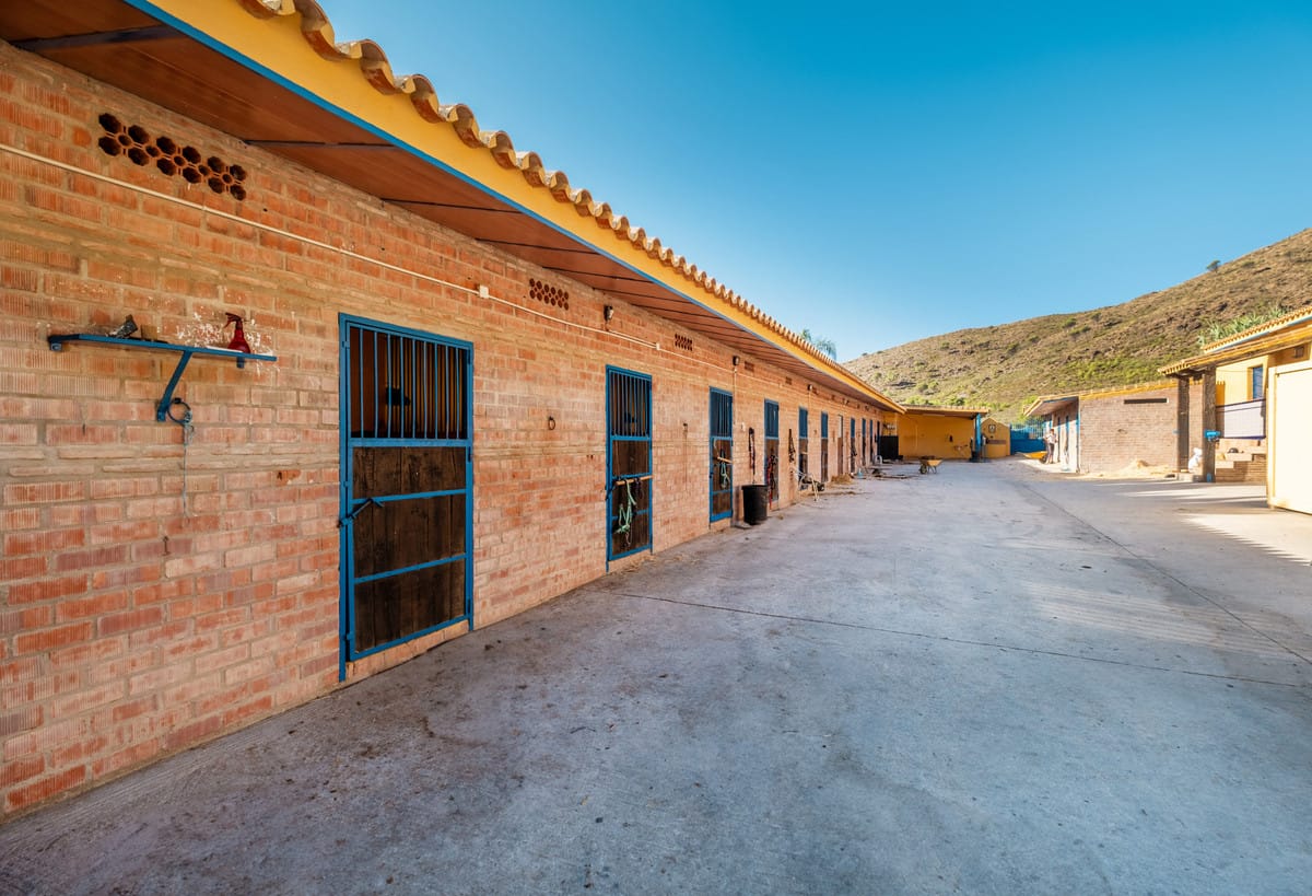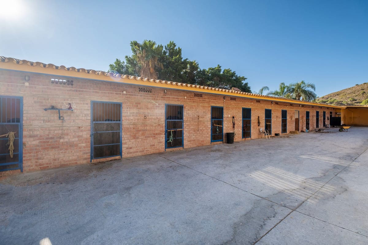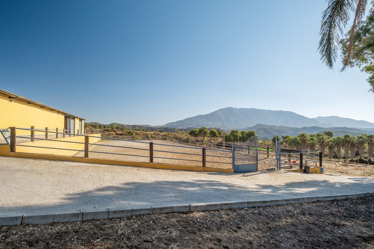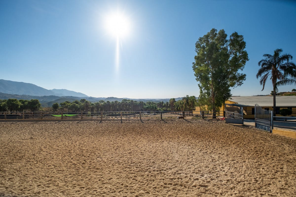 Set on a sprawling 100,000 square meter plot in the picturesque Mijas Costa, this exceptional equestrian property offers a rare combination of extensive facilities and proximity to the beach. Just a 15-minute drive from the stunning Costa del Sol coastline, this estate is perfect for equestrian enthusiasts, professional trainers, or those looking to invest in a unique property with immense potential. The centerpiece of the estate is a state-of-the-art stable complex, featuring 25 well-maintained boxes designed for the utmost comfort and care of horses.