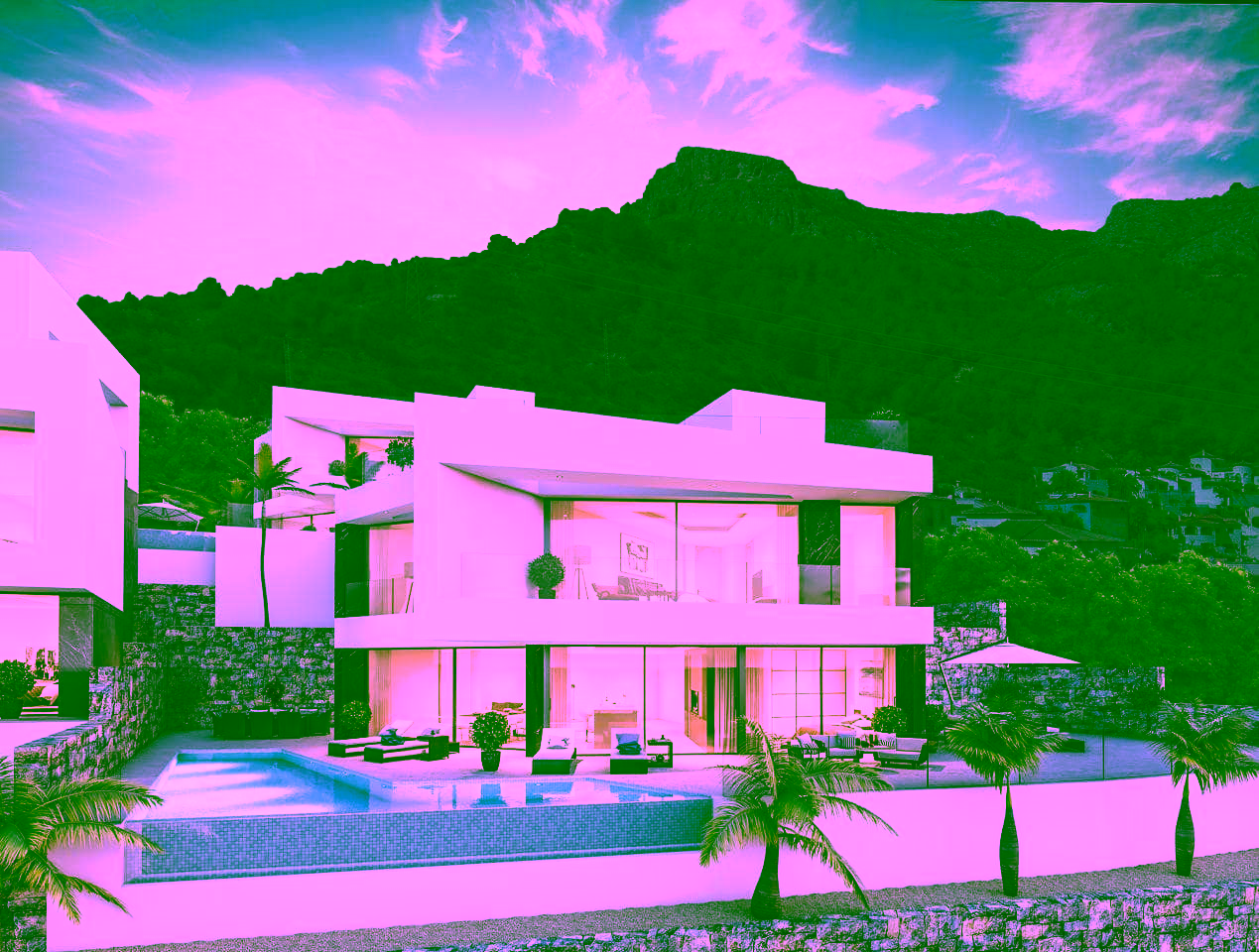 Modern detached luxury villa with stunning sea views.
