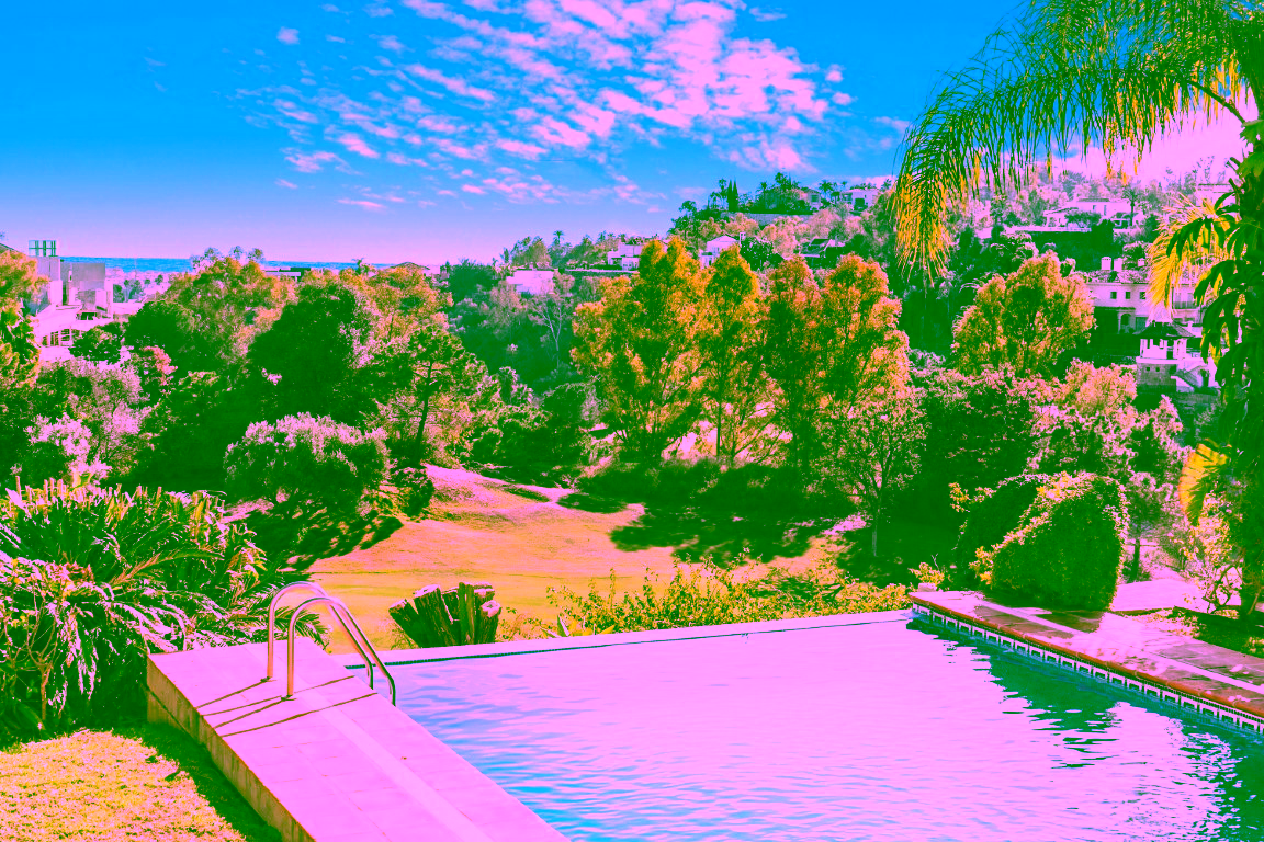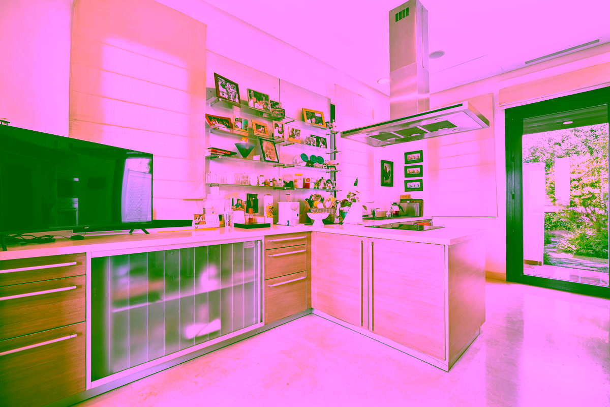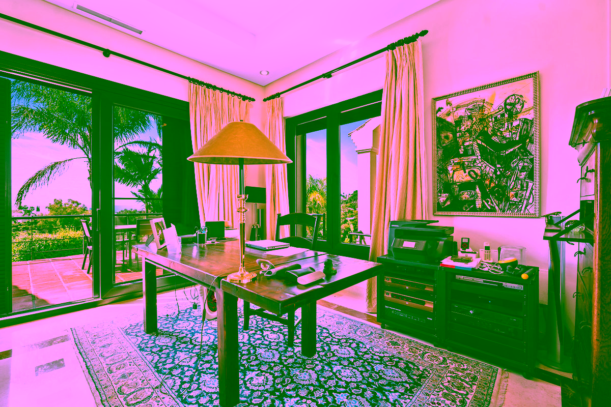 Two additional guest bedrooms share a stylishly designed bathroom, offering ample comfort and privacy. The lower level of the property adds a wonderful dimension of versatility and functionality. It includes a second kitchen and dining area with independent access to the garden, making itideal for guests or as a separate living space. This level also houses two well-appointed guest suites and a state-of-the-art cinema room, perfect for enjoying movie nights in the comfort of your home.