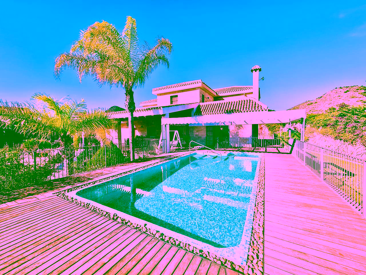 Welcome to Villa Laguna a spectacular 4 bedroom detached exclusive villa, located on the outskirts of the La Manga Club, a luxurious golf resort boasting three 18 hole golf courses, hotel and all the amenties you would expect from a first class resort. This impressive villa is built on huge plot, spanning over 13,000m2 accessed via a private driveway and two electric gates. Inside you will find the immaculate landscaped gardens with two beautiful ponds, waterfalls and a pretty streams along with a vineyard and various fruit trees along with a basketball and padel court and children’s park. The villa itself ticks every single box you could wish for with elevator access from the 300m2 garage which has its own private bar and two private rooms which could be converted into extra living accommodation. Upstairs in the main house you will find the main living room, 2 double bedrooms with en-suite bathrooms, the office along with the fantastic kitchen with independent utility room and walk-in pantry. The is also access to the wraparound terrace and swimming pool, sun deck and bbq area with the most stunning views across the gardens.On the top floor of the property there are 2 en-suite bedrooms fitted with walk-in closets and en-suite bathrooms. Both have private access to the solarium with views out towards the sea. Built in 2006 this property has been built to a very high specification with many, many extras included and bespoke finishes. Perfectly situated, the villa is just a short 10 minute drive to Cabo De Palos with its designated Integral Marine Reserve, considered to be one of the best scuba diving sites in the Region. The villa is also just 25km from the airport.
