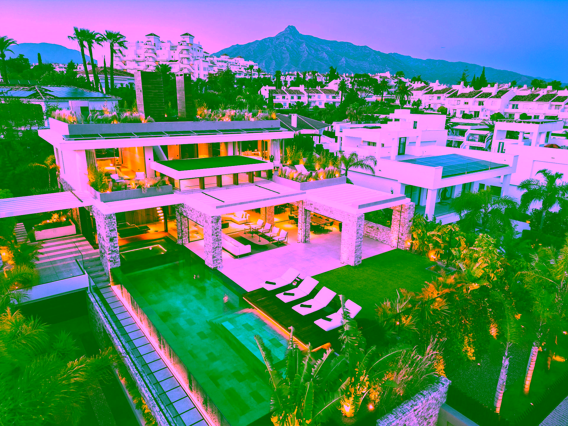 Discover Villa P, an architectural masterpiece in Nueva Andalucia, where every detail is designed to offer an unparalleled lifestyle. Just minutes from Puerto Banus and within walking distance to all amenities, this extraordinary property combines stunning modern design with an unbeatable location. The villa’s exterior boasts a striking infinity pool, stretching seamlessly from the garden to the interior, enhanced by LED lights that create an enchanting atmosphere at night. A generous terrace offers multiple chill-out areas and alfresco dining spaces, perfect for entertaining or relaxing in style.