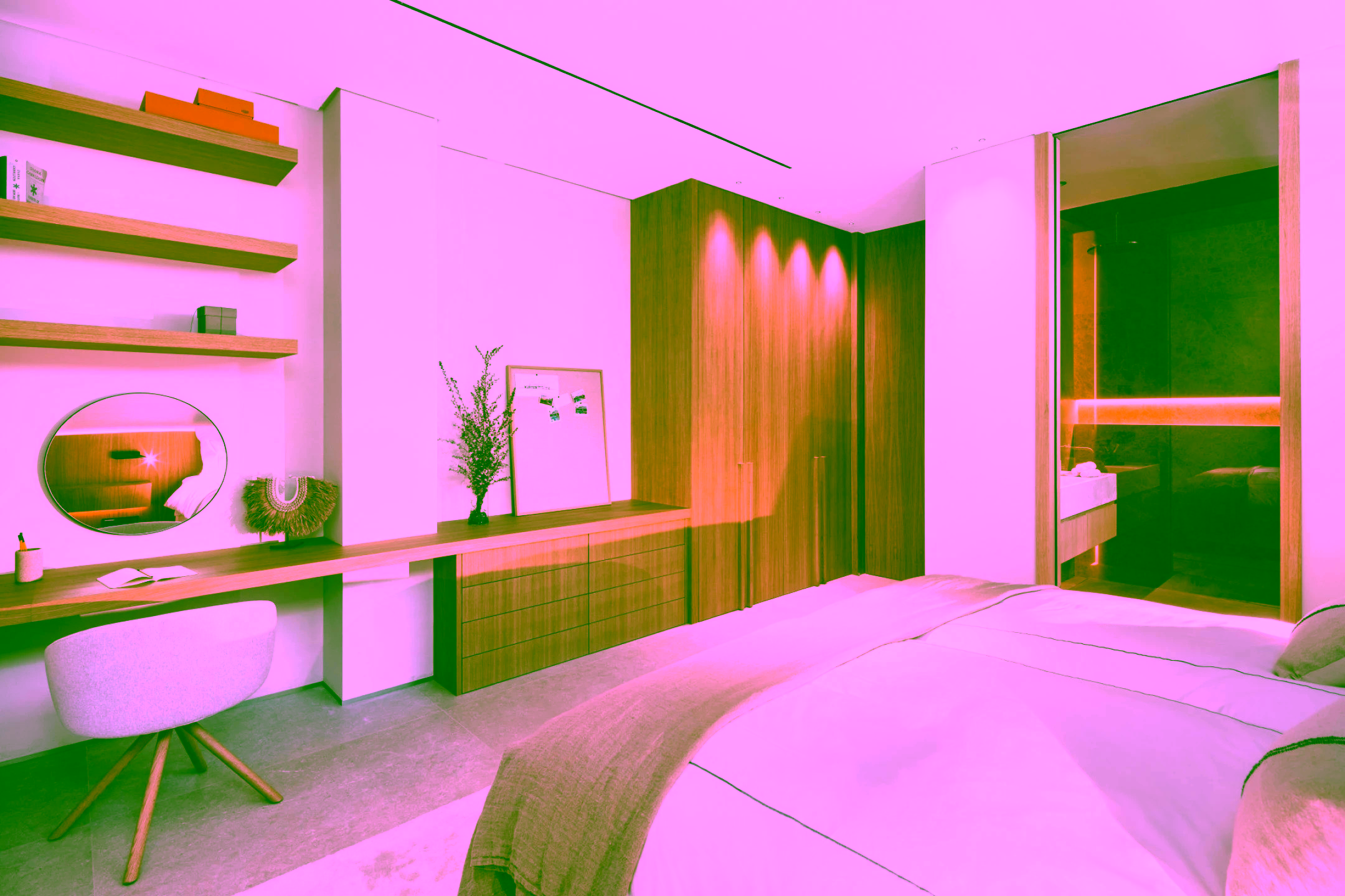 Step inside to an interior that is nothing short of spectacular. The open-plan living, dining and kitchen area is bathed in natural light, thanks to floor-to-ceiling windows and a double-height ceiling that exudes an airy, spacious feel. The living area features stunning Travertino Tajal stone walls, mimicking the villa’s exterior, and a cosy nook adorned with lovely trees. The kitchen is a dream, with generous proportions, state-of-the-art appliances, natural oak accents, ample storage and direct access to both formal and intimate dining areas. A lift connects all level for added convenience, as well as leading to the rooftop terrace that provides 360º views of La Concha and Mediterranean sea.
