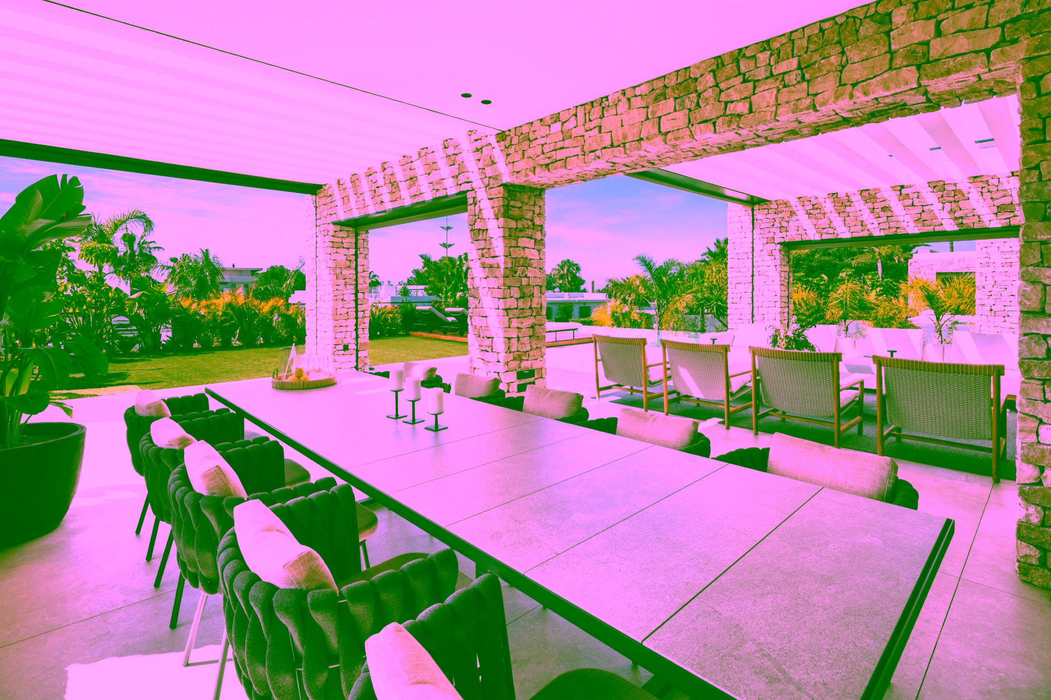 Villa P offers five exquisitely decorated ensuite bedrooms, each designed for maximum style and comfort. The master bedroom is a true showstopper, featuring direct terrace access, dedicated beauty section and an opulent master bathroom. Additionally, the villa includes an incredible entertainment level, equipped with a custom bar, a wine bodega, a chill-out lounge and a TV section that doubles as a home cinema. Remarkably, you can view the stunning swimming pool from this level, adding a unique visual appeal. Accessible via a private driveway, the villa includes a convenient private garage, ensuring ultimate privacy and security.