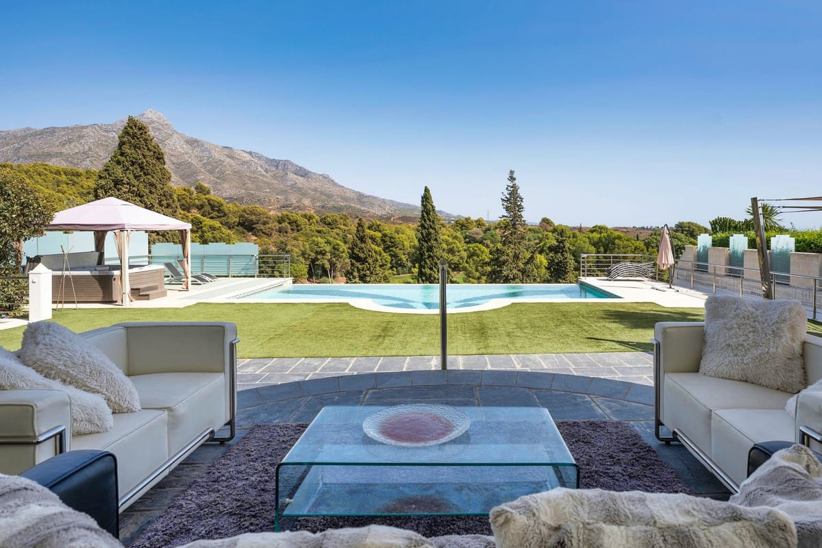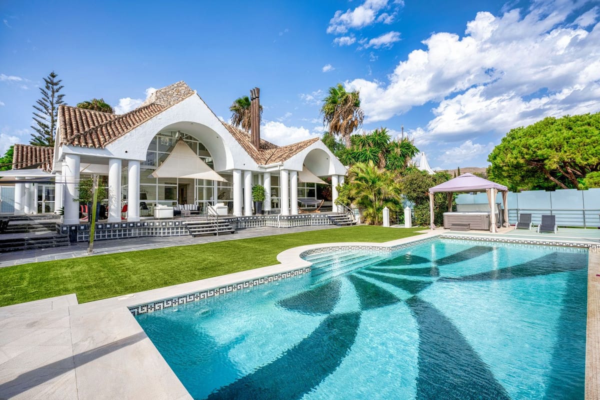 Discover the pinnacle of luxury living with this breathtaking 6-bedroom villa, perfectly positioned on the front lines of Aloha Golf in Nueva Andalucia.