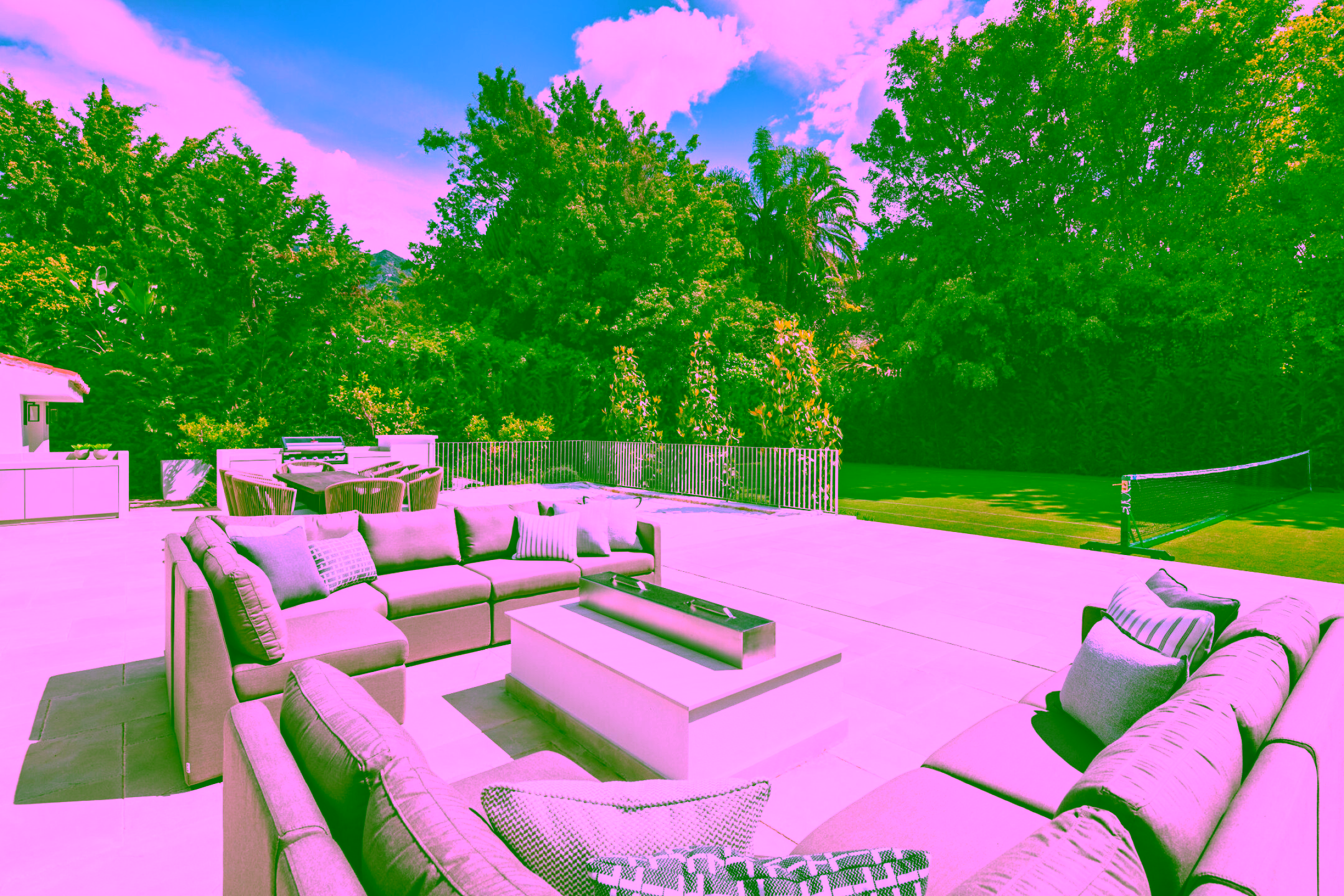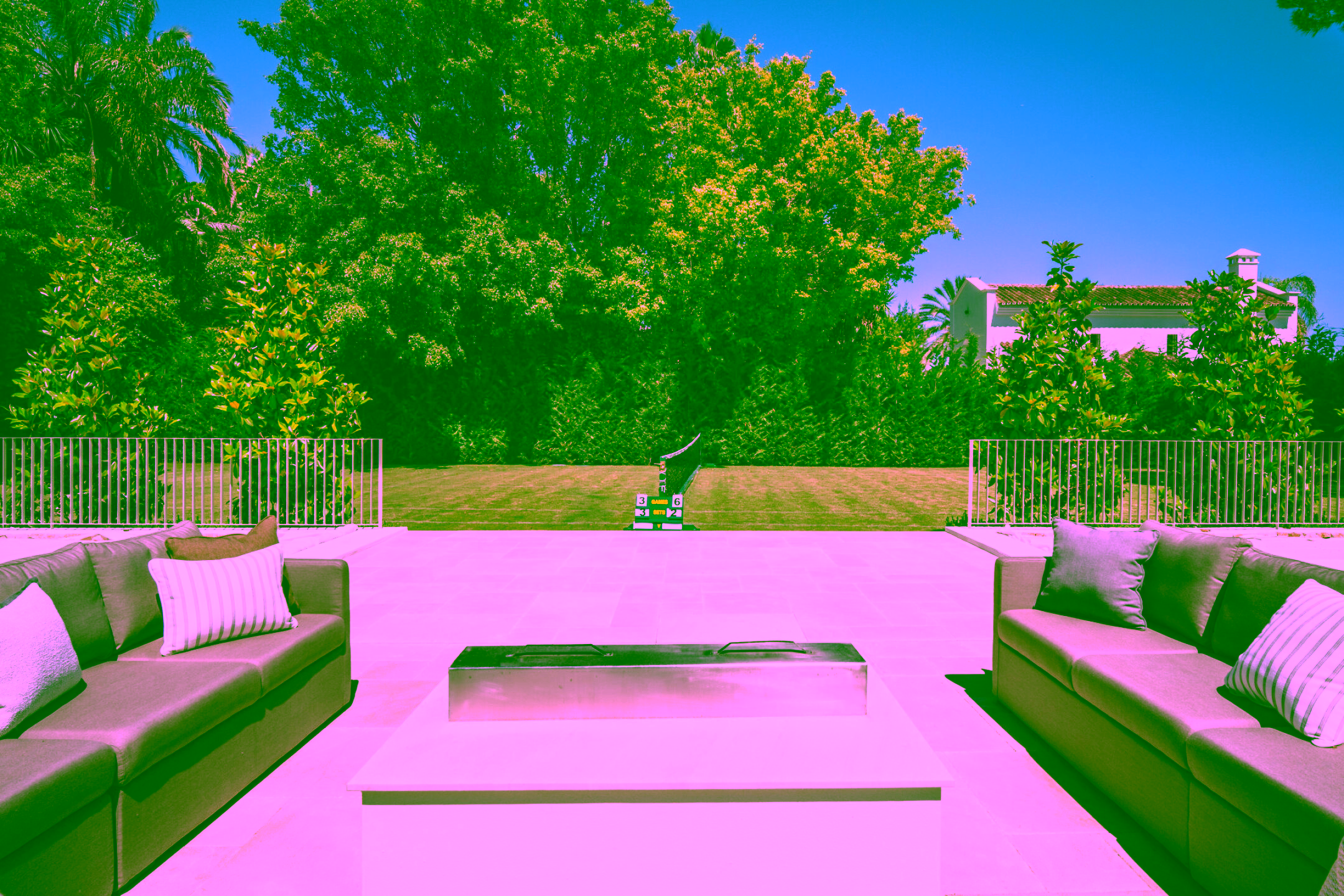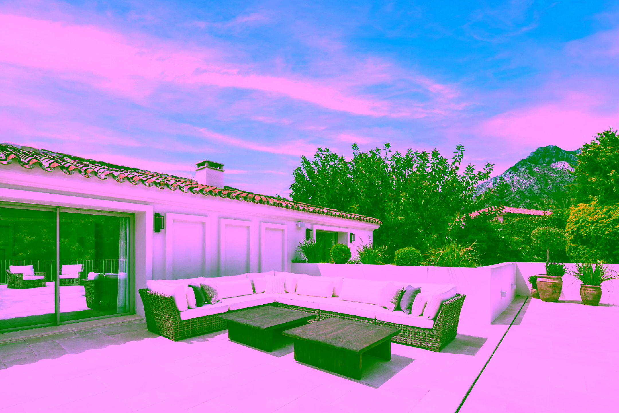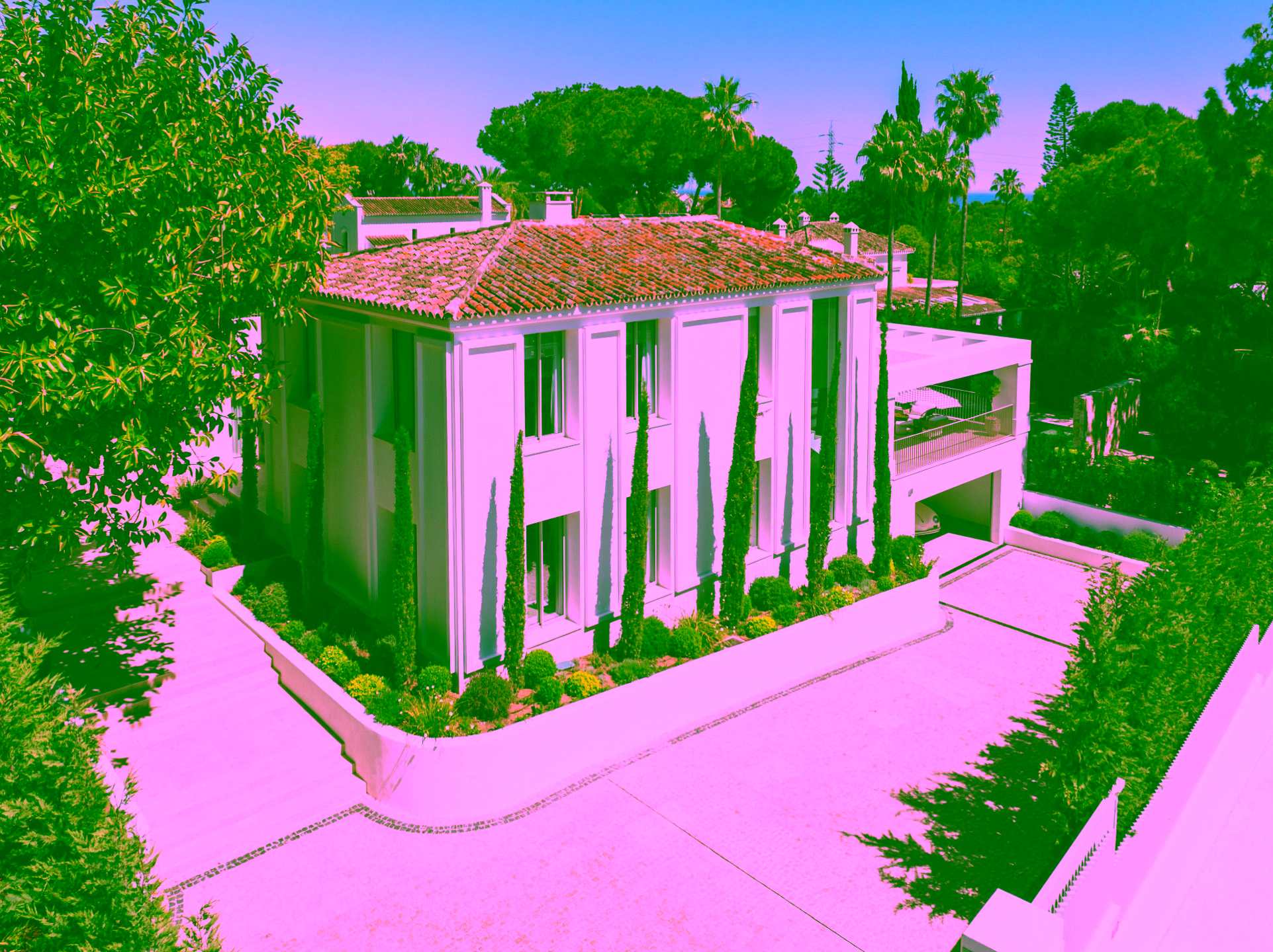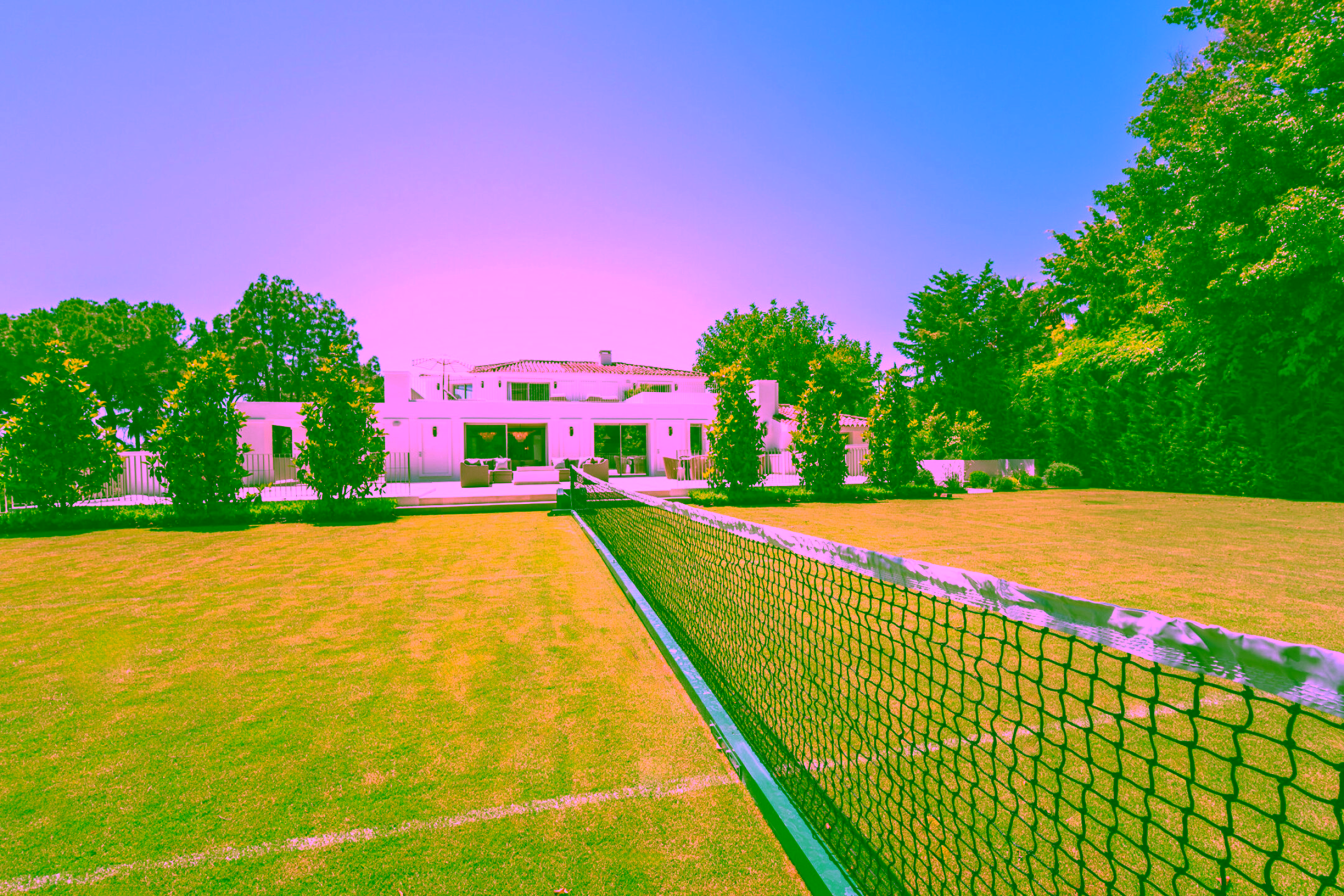 Positioned on a flat 2,370 m² plot with 712 m² of internal space, the villa combines sharp architectural lines with warm natural materials and traditional touches, creating a timeless and inviting character. Expansive glass doors open to landscaped gardens, a large swimming pool and multiple outdoor dining and lounge areas. The property also enjoys impressive views of La Concha mountain. It stands out as one of the only homes on the Golden Mile with a full-size private grass tennis court.