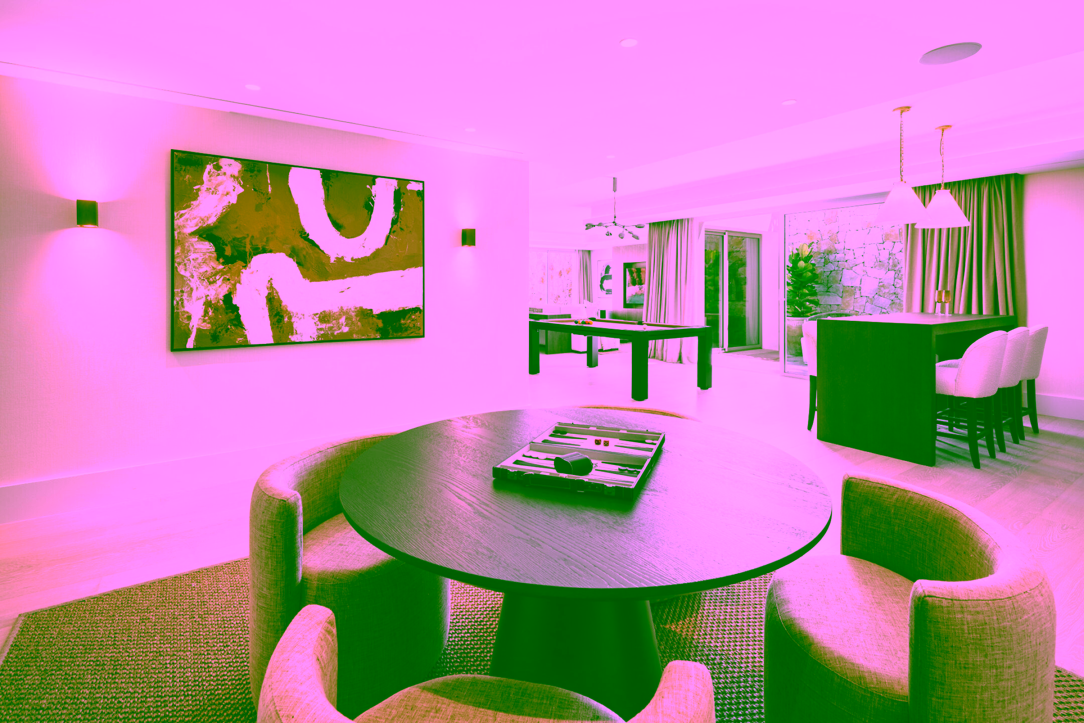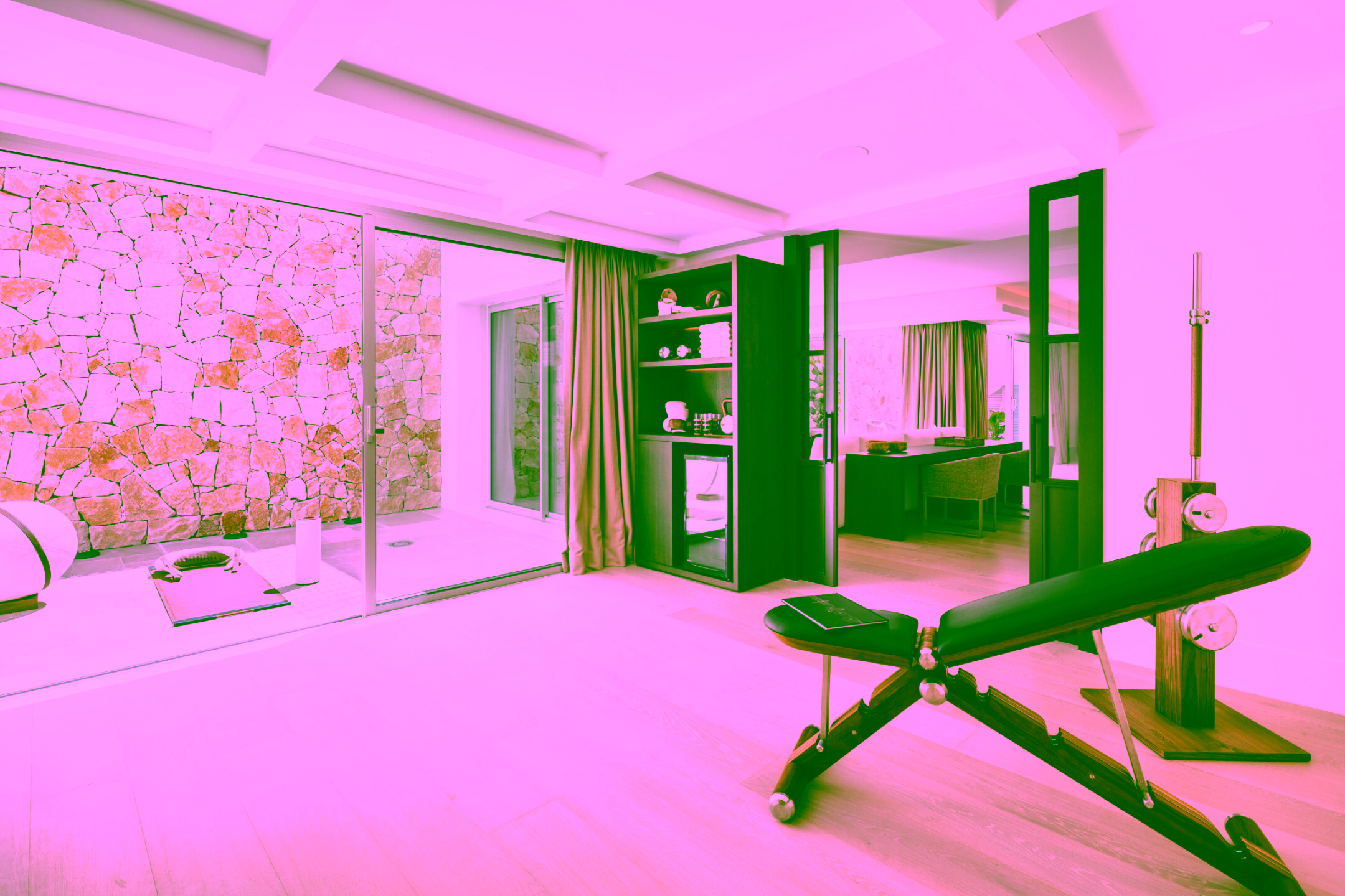 Inside, the layout features bright open-plan living spaces, a high-spec kitchen and a variety of comfortable lounge areas. There is also a private wellness suite with a gym that includes a Pilates reformer machine and sauna, along with a cinema room and games area. In addition, the outdoor gym area boasts a cold plunge, perfect for recovery and wellness. The expansive terraces offer several outdoor zones including a chill-out space and a fire pit lounge, ideal for enjoying Marbella’s warm evenings.