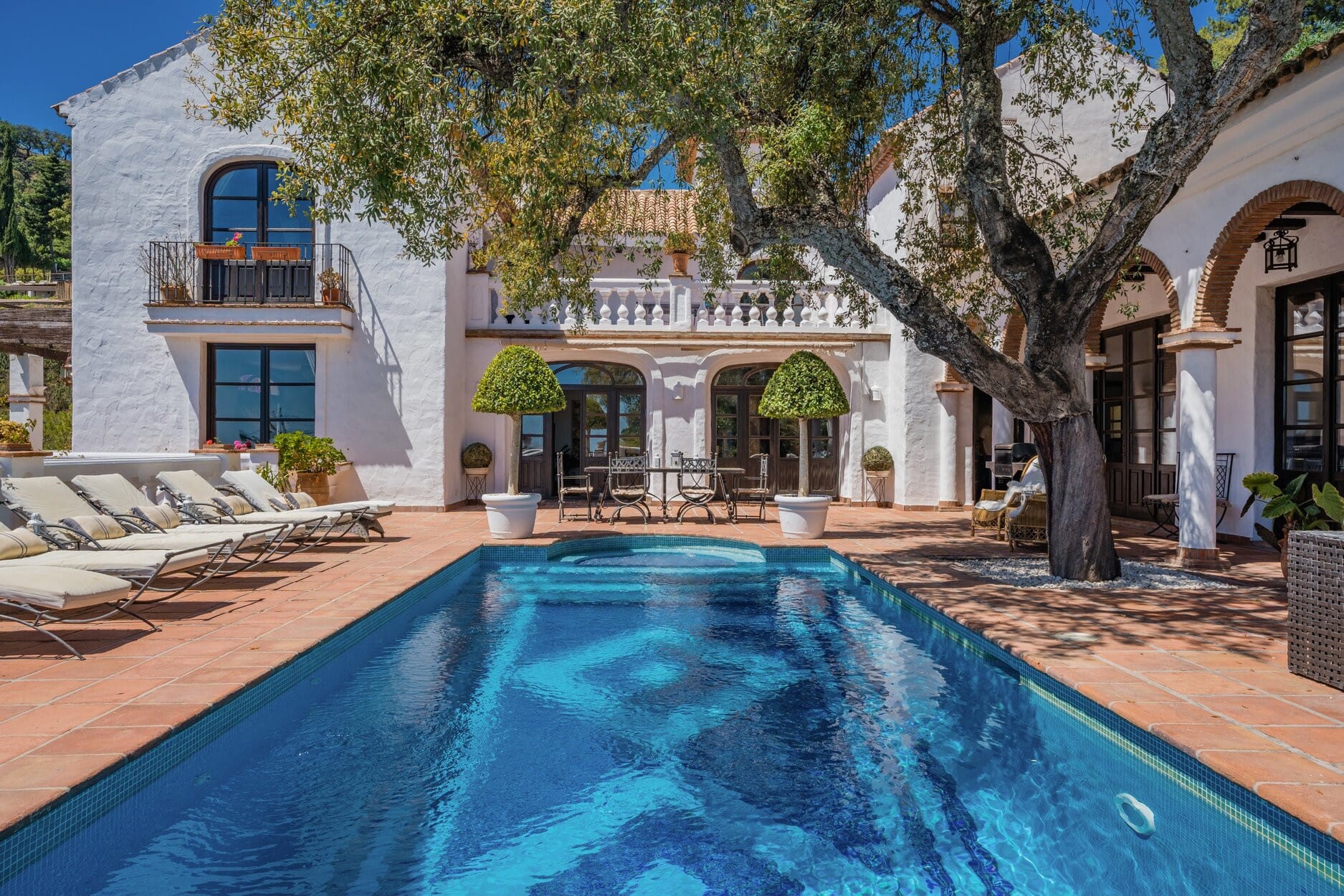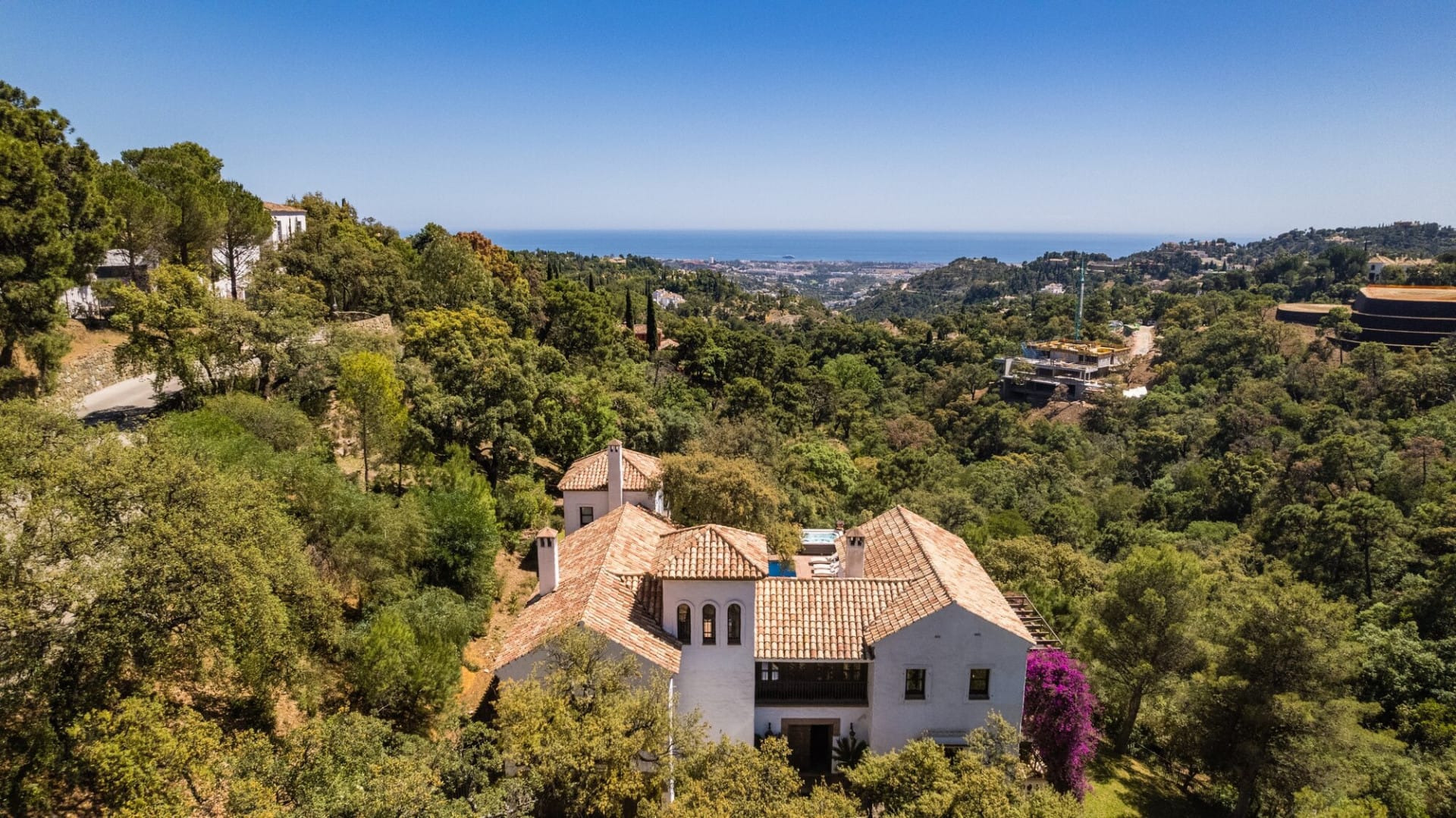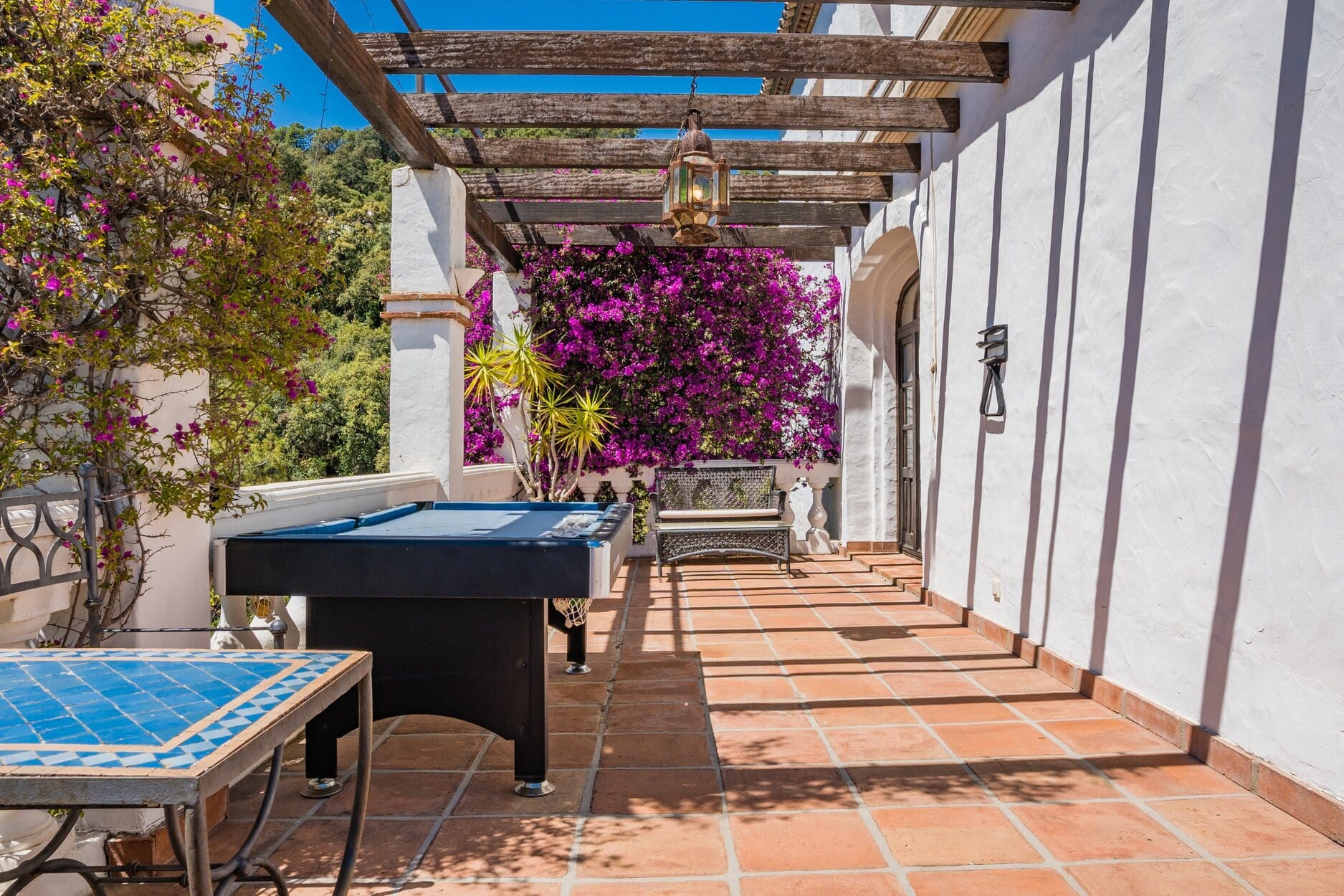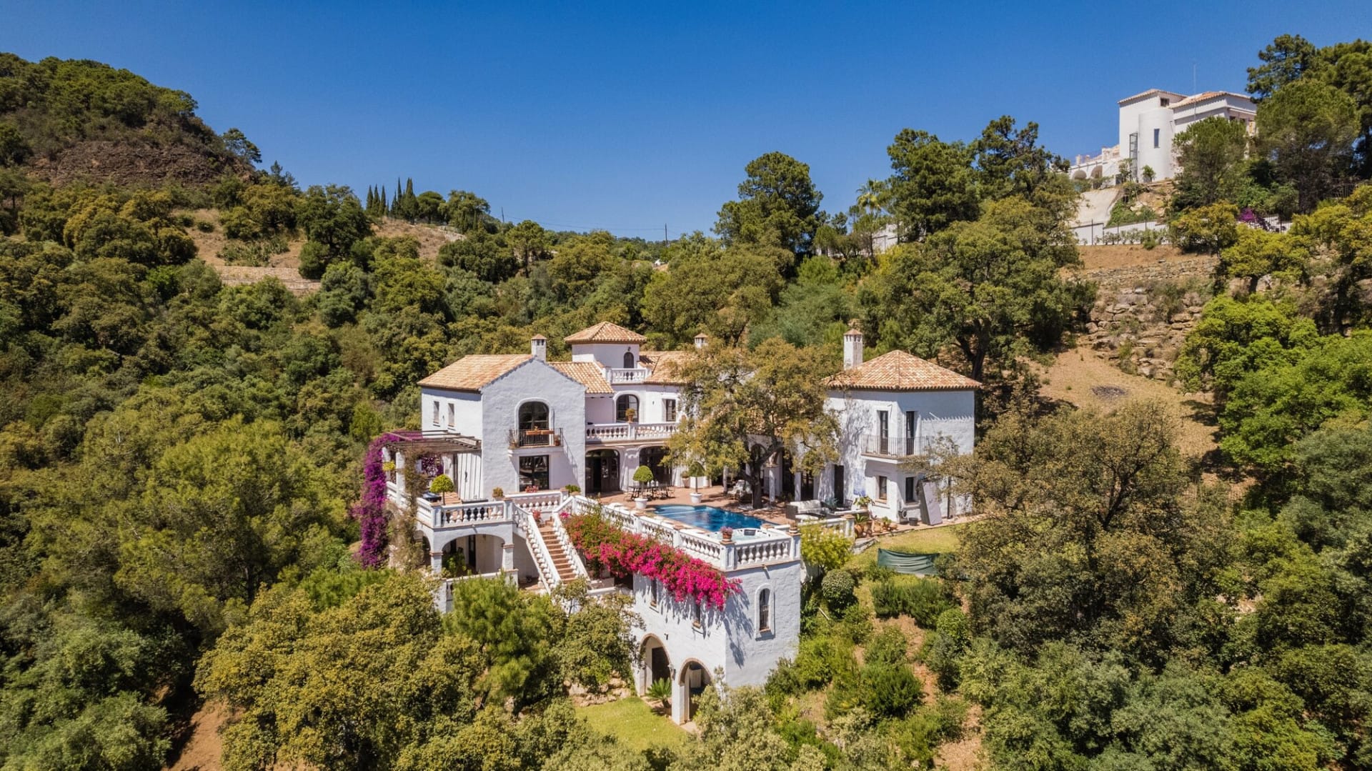 Gorgeous villa nestled in the mountains of El Madroñal. Located within one of the most prestigious gated and secured communities on the Costa del Sol, this property is a rare gem: there are not many of the kind. Set on a generous plot surrounded by a mature tropical garden, the villa offers exceptional privacy thanks to its orientation toward a protected natural reserve.