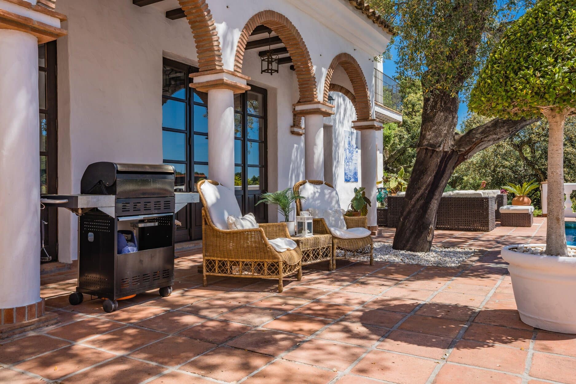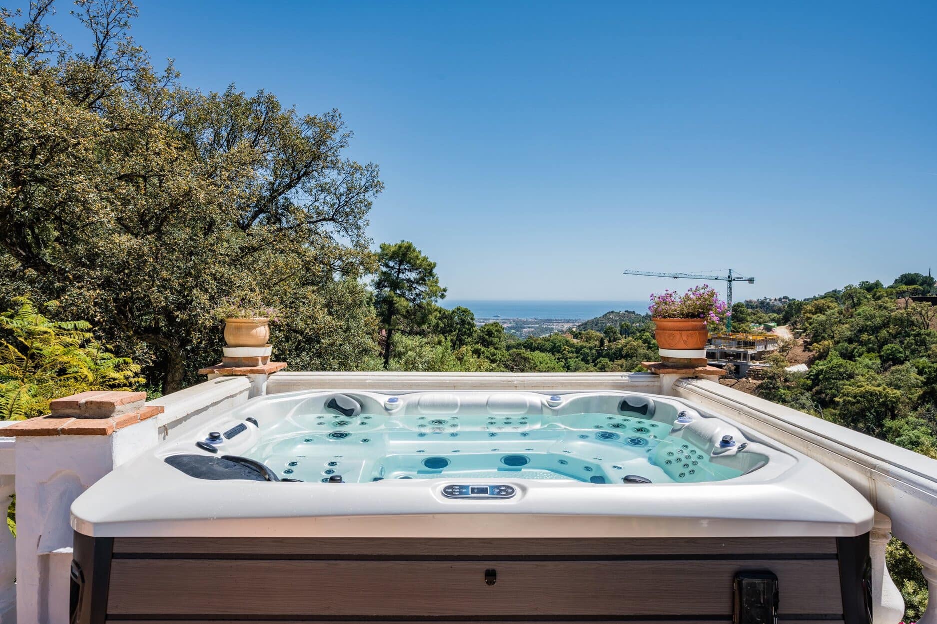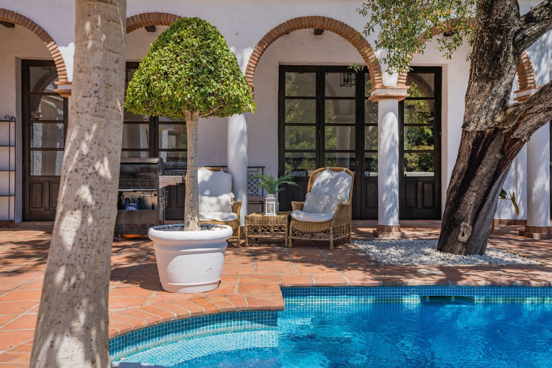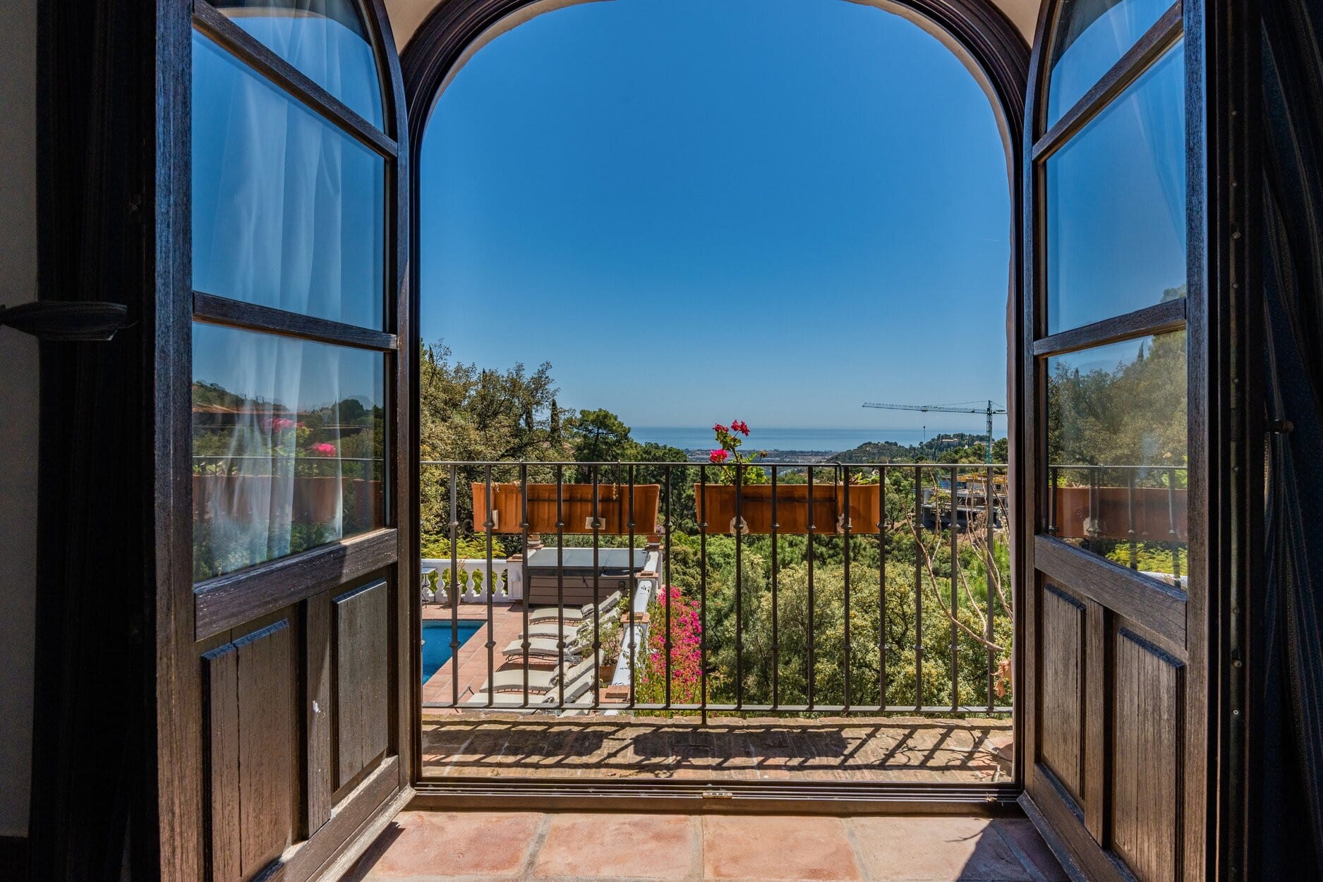 Gorgeous villa nestled in the mountains of El Madroñal. Located within one of the most prestigious gated and secured communities on the Costa del Sol, this property is a rare gem: there are not many of the kind. Set on a generous plot surrounded by a mature tropical garden, the villa offers exceptional privacy thanks to its orientation toward a protected natural reserve.