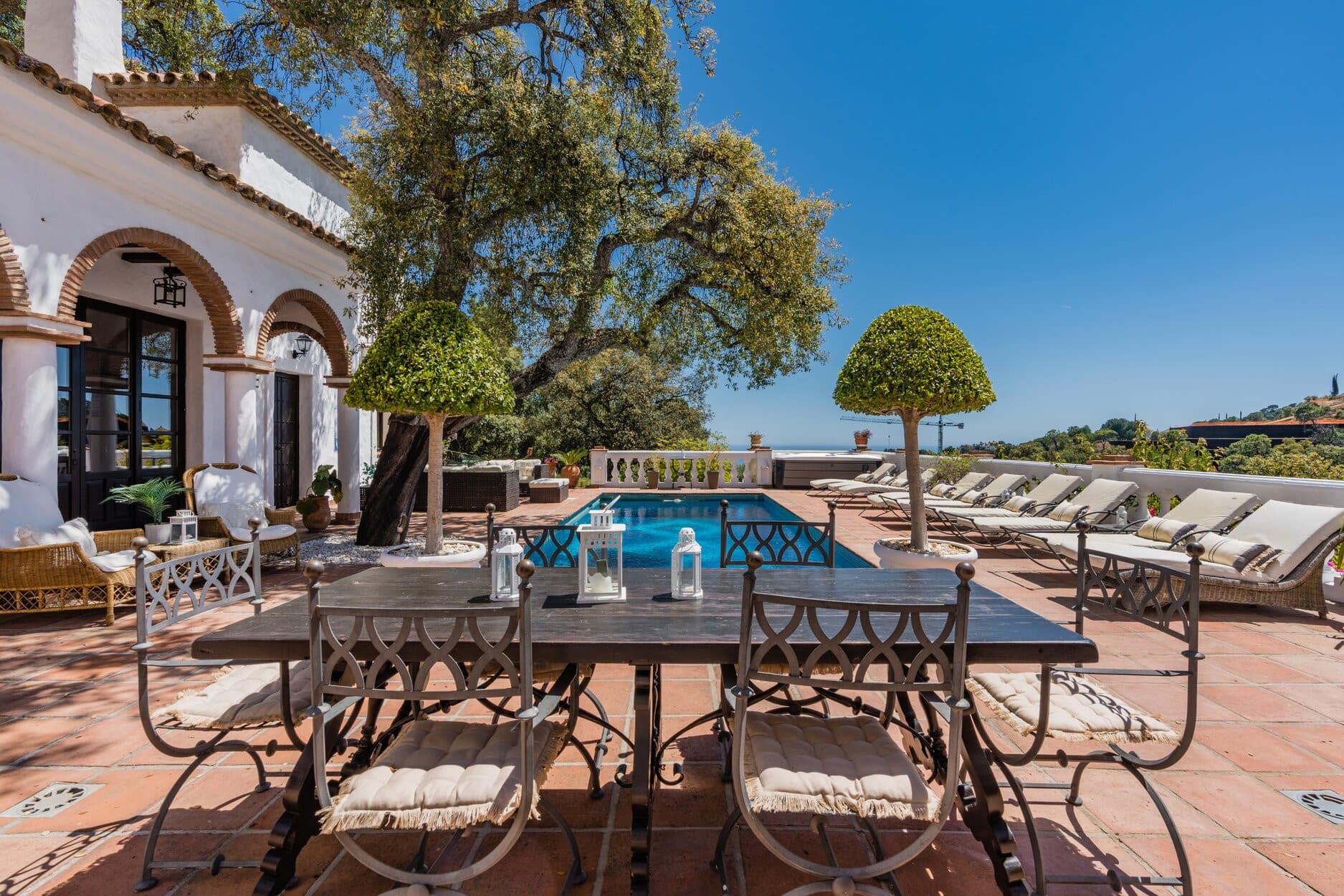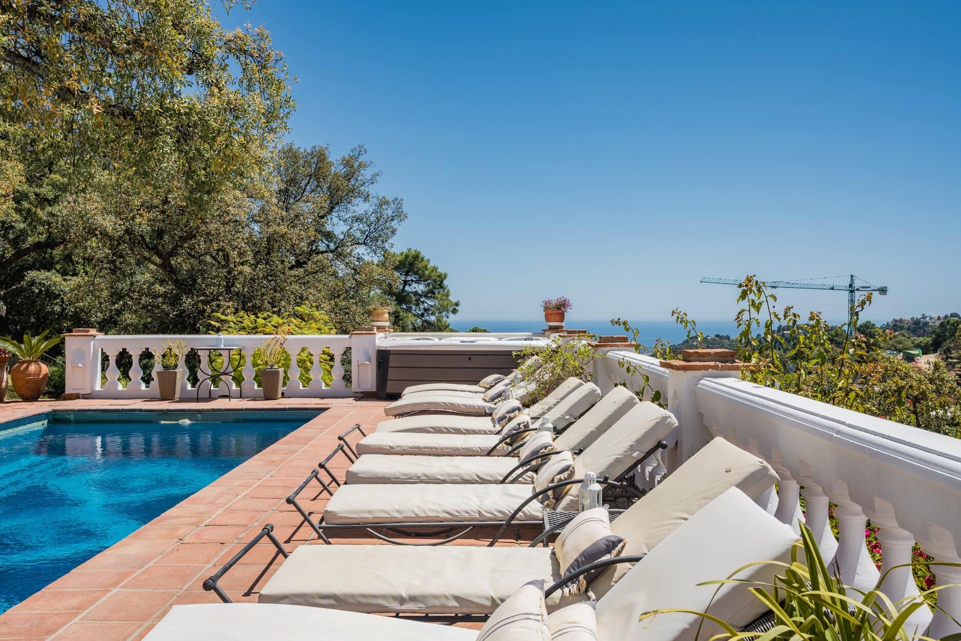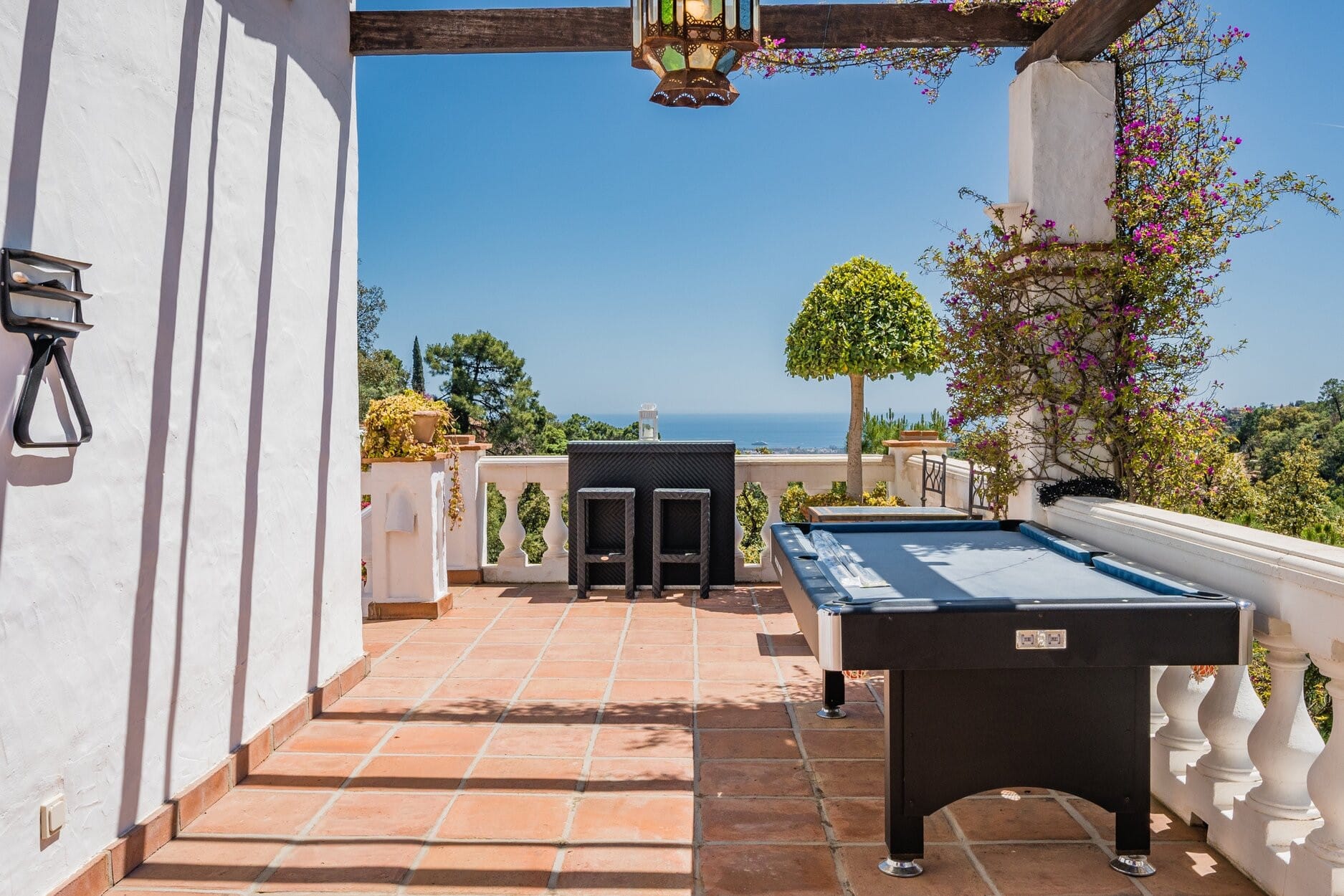 A spacious outdoor terrace wraps around the heated swimming pool, creating a perfect setting for outdoor living and entertaining. From here, the panoramic views are simply breathtaking — stretching across the Mediterranean coastline, Marbella, Gibraltar, and even the distant shores of Africa.