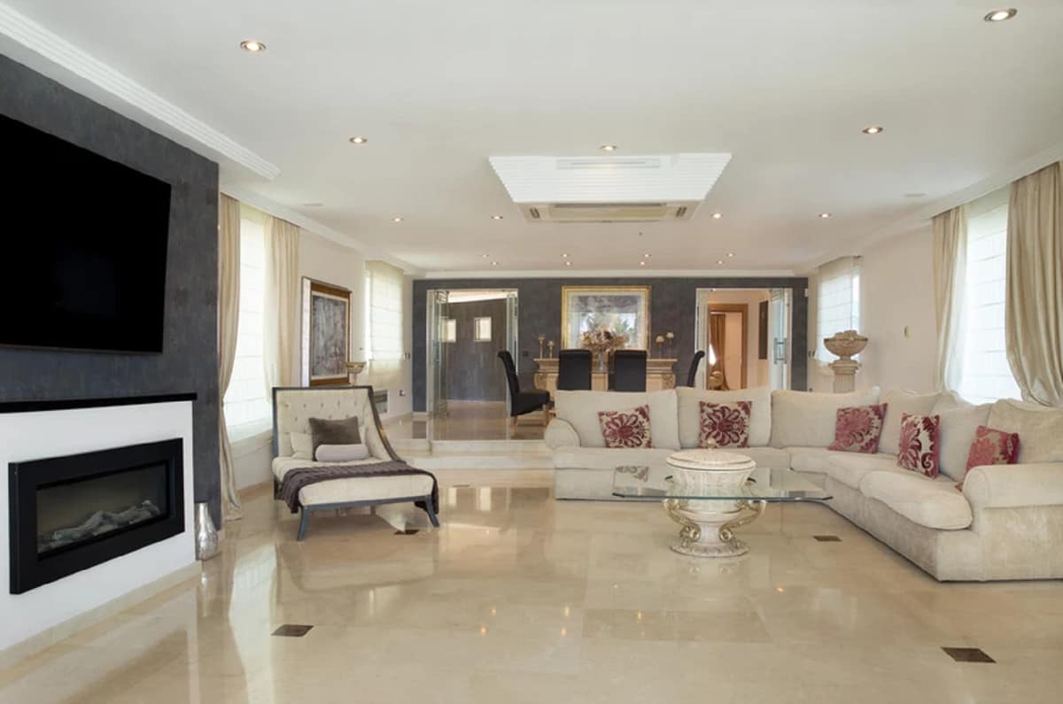 Inside, the villa is furnished and decorated to impeccable standards. The spacious, bright, and open living areas create a fresh and serene atmosphere, exuding elegance and luxury. Thoughtful touches like a chaise lounge, fireplace, and private bar add a touch of extravagance.