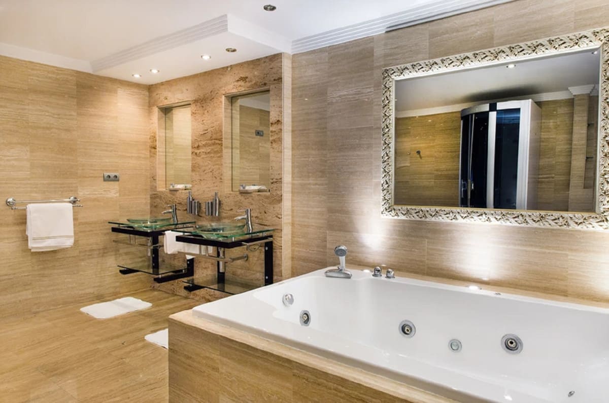 The villa features eight Versace-themed bedrooms, each with its own opulent bathroom featuring whirlpool tubs, bathtubs, and rain showers—offering ultimate comfort and indulgence. The spacious, en- suite bedrooms were crafted with luxury in mind, providing the perfect retreat after a day spent under the sun.