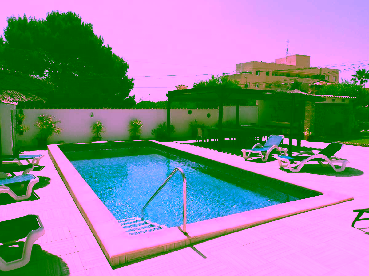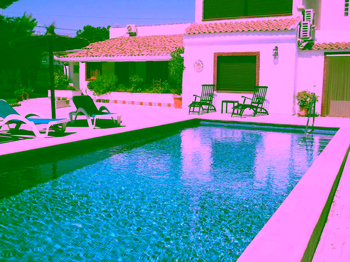 Sold fully furnished with many extras including air conditioning throughout, solar panels for hot water, plus 2 electric heaters in case they are needed. The villa is built in a traditional rustic style with original beam features, high ceilings and unique decoration. The villa offers excellent potential for a large family home or as a rental investment due to it´s pre-existing tourist license. The villa is located in an area close to supermarkets, bars and restaurants. The golfcourses are at 3.3km. The beach of Dehesa de Campoamor is at 5km. It’s a 45 min. drive from the airport. And if you want to do some shopping there’s the La Zenia Boulevard Shopping Centre at 5km. Year built: 1985