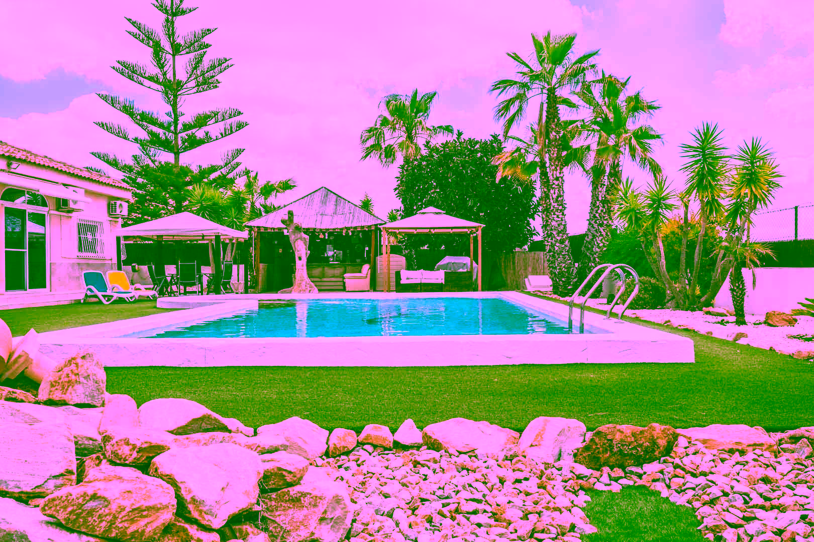 6 stunning bedrooms, 3 featuring luxurious en-suitesMaster en-suite boasts a beautiful bathtub and walk-in showerExceptionally spacious living room with a stylish bar pellet burnerExpansive fully fitted kitchen with a central islandEnclosed terrace area complete with a bathroom and showerImpressive 10×5 private pool for ultimate relaxationOutdoor bar with a comfortable seating area, perfect for entertainingConvenient sports pitch located to the side of the propertyAmple driveway accommodating multiple carsModern air conditioning throughout for year-round comfort Lo Santiago is a quiet urbanisation situated between La Torre Golf Resort and El Valle Golf Resort. A popular area for those wishing to buy a home in Spain at a competitive price. Good value, decent sized villas without the expensive community fees of living on a golf resort. Only minutes away from the main San Javier to Murcia motorway making it ideal for commuting to other parts of Spain. Local bar/restaurant.
