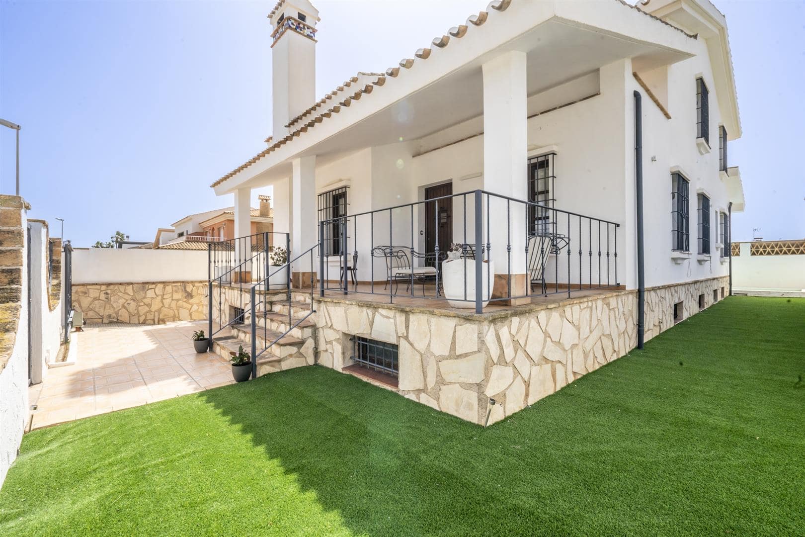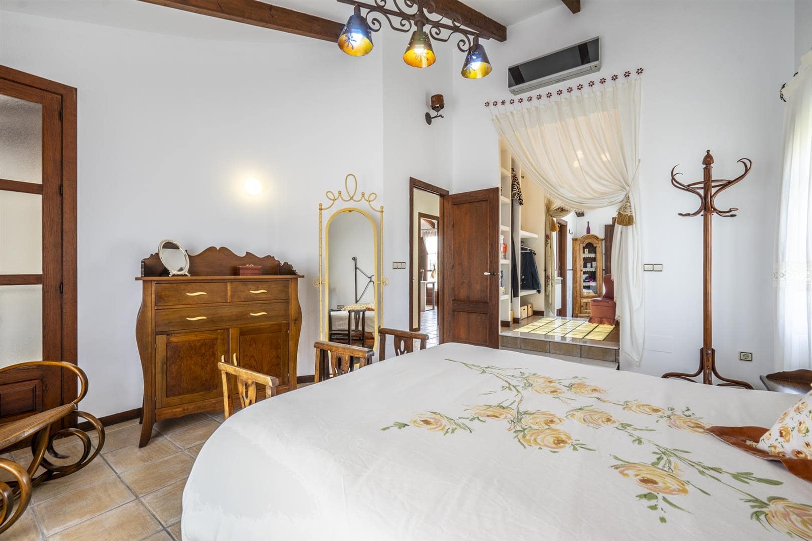 Impressive four-bedroom villa offering spacious and versatile livingElegant principal suite featuring a stunning walk-in dressing area leading to a luxurious en-suite bathroom with Jacuzzi bathtubAll bedrooms include fitted wardrobes for ample storageLarge rustic-style kitchen, full of character and ideal for family livingStriking living room with mezzanine level, beautiful high beamed ceilings, and a feature fireplaceGenerous basement space, perfect for additional living, storage, or entertainment usePrivate garage with space for two cars, plus a convenient washroomAttractive outdoor area with a dedicated BBQ space and private swimming poolAir conditioning throughout for year-round comfortIdeally located close to supermarkets, local amenities, and within easy reach of the beachesSan Javier is a sought-after coastal town on the shores of the Mar Menor, renowned for its beautiful beaches, relaxed Mediterranean lifestyle, and year-round sunshine. Popular areas such as Santiago de la Ribera offer charming promenades, excellent dining, and easy access to the sea, making it ideal for both permanent living and holiday homes.