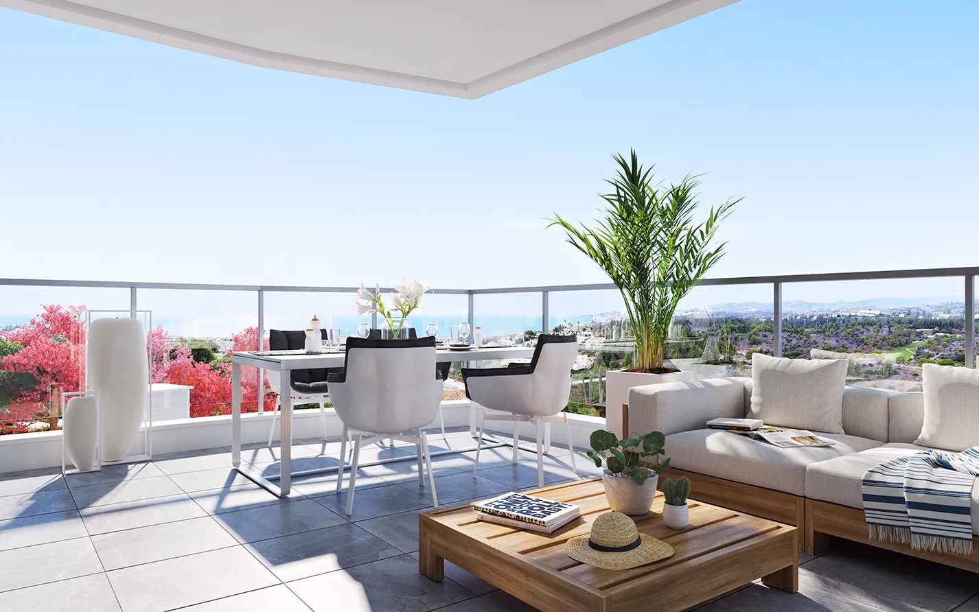Its contemporary architecture and design give prominence to the terraces, which are designed to maximize the Mediterranean light and the best views, blending seamlessly with the surroundings and respecting the natural environment. The homes offer spacious and open-plan living areas, an open-plan kitchen with an island, and living rooms and bedrooms with direct access to the terrace. Extensive and spectacular communal areas are designed for enjoying leisure time with family and friends. These include three outdoor swimming pools, a spa area with an indoor pool, Turkish bath and sauna, an indoor sports area with a fully equipped gym, a gourmet food hall, a paddle tennis court, an outdoor fitness circuit, a putting green, urban gardens, and more. Vitta Nature is located in the El Chaparral residential area, a peaceful neighbourhood with all amenities within easy reach and excellent transport links to Malaga city and surrounding towns.