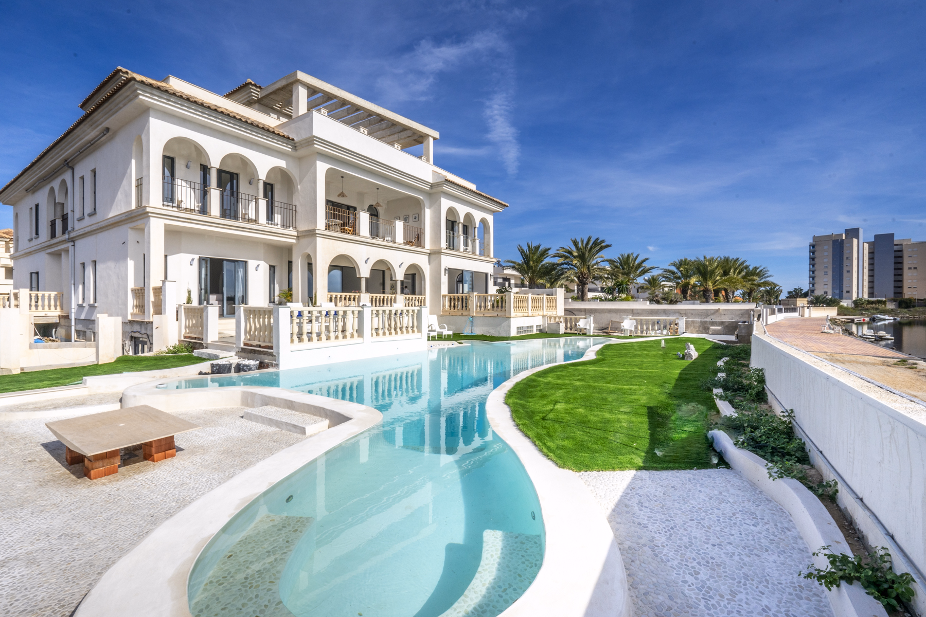 Boasting an impressive 1,086 m² of refined living space distributed across four beautifully appointed floors, the residence features 7 spacious bedrooms and 7 bathrooms. Light, spacious, and seamless indoor–outdoor living define the home, with expansive windows framing serene water views, flooding each room with natural sunlight.